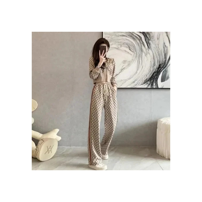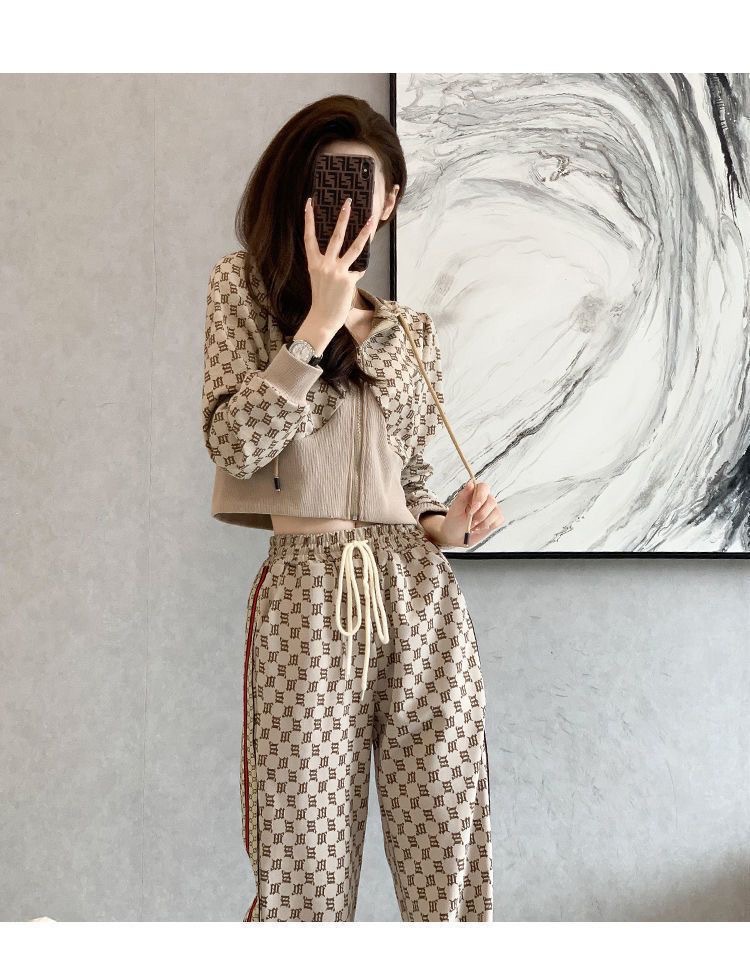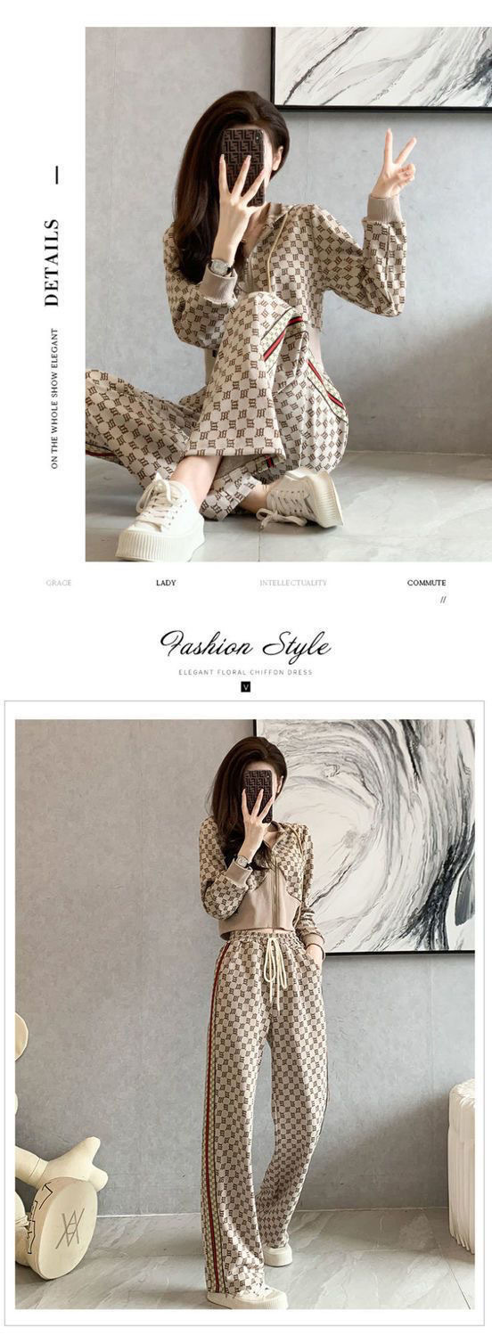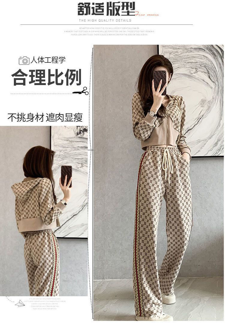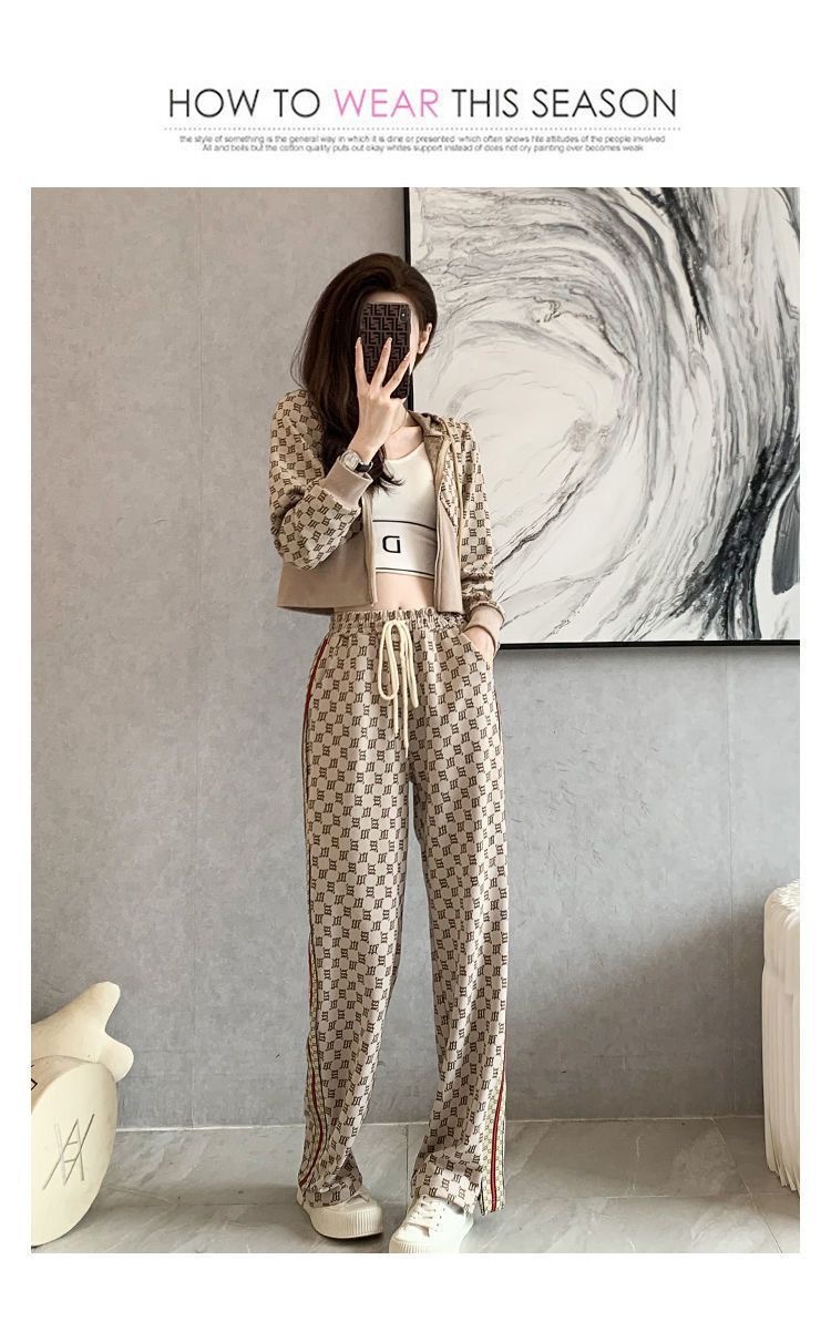 가을 새로운 패션 넓은 다리 슬리밍 스포츠 세트 여성의 짧은 캐주얼 카디건 연령 감소 우아한 투피스 세트스토어 가기