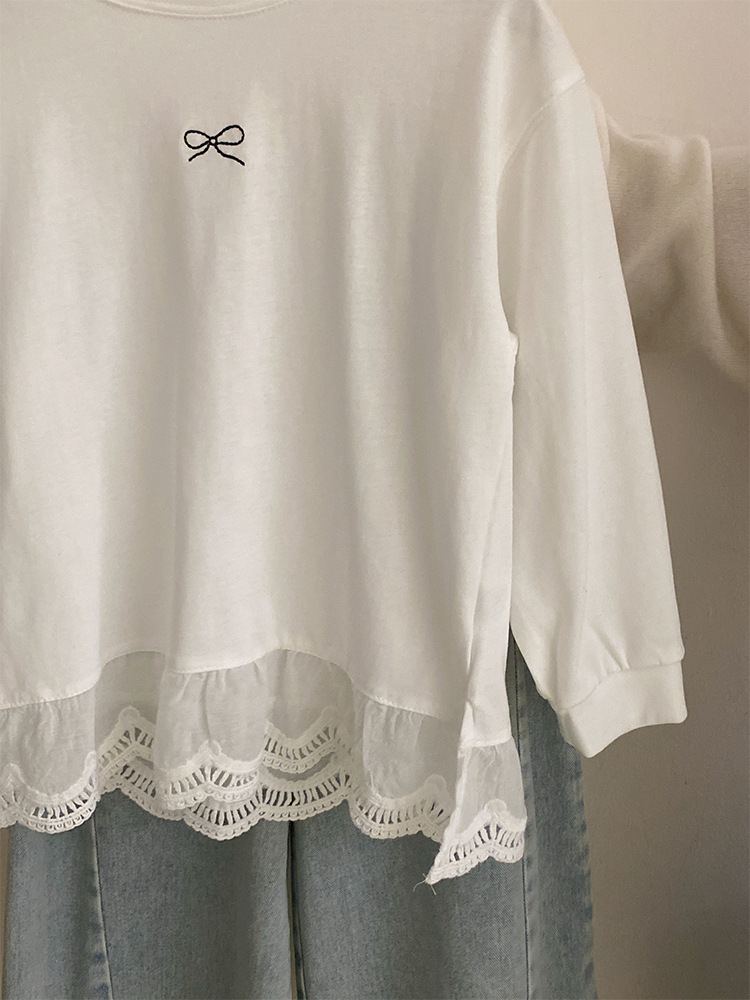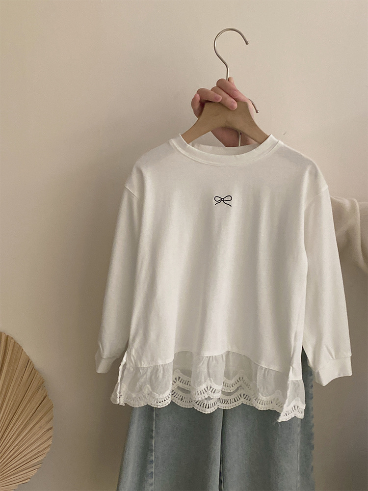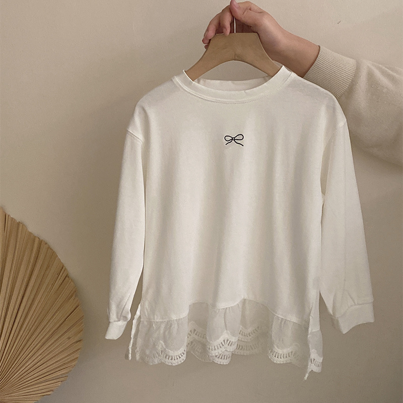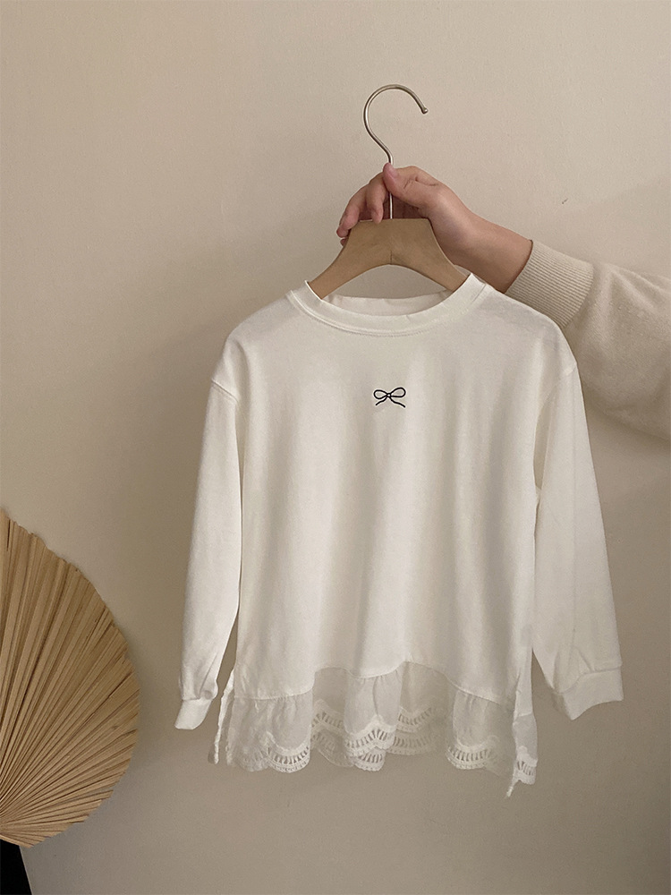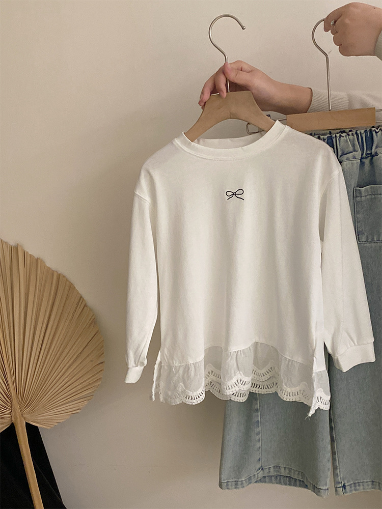 소녀 2025 봄 달콤한 머리 레이스베이스 셔츠 어린이 서양식 활 인쇄 넓은 다리 트렌디 바지스토어 가기