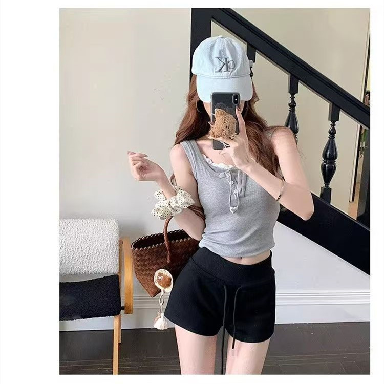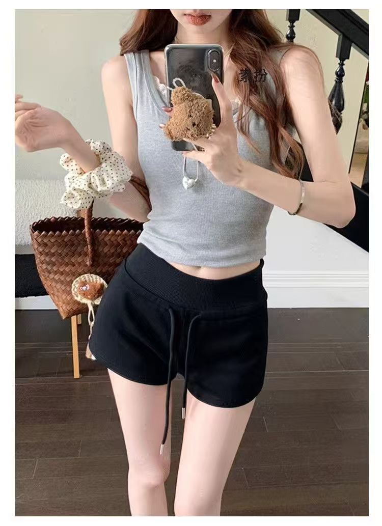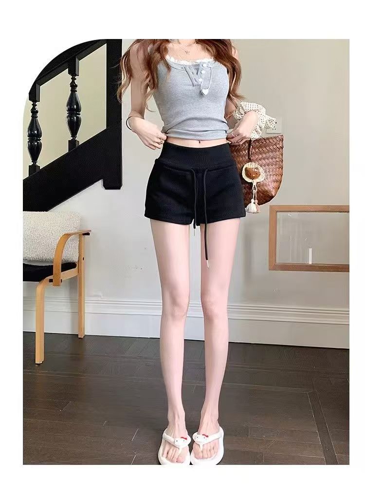 2025 뜨거운 여자 스포츠 반바지 여성 여름 Drawstring 슬리밍 캐주얼 요가 미국 섹시한 엉덩이 커버 낮은 허리 뜨거운 바지