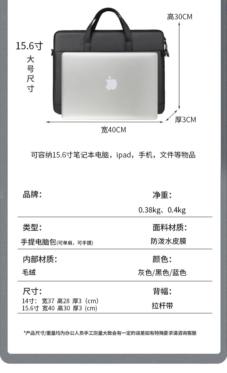 13인치 14inch 16inch 비즈니스 노트북 가방 태블릿 노트북 휴대용 라이너 가방 통근 사무실 서류 가방스토어 가기