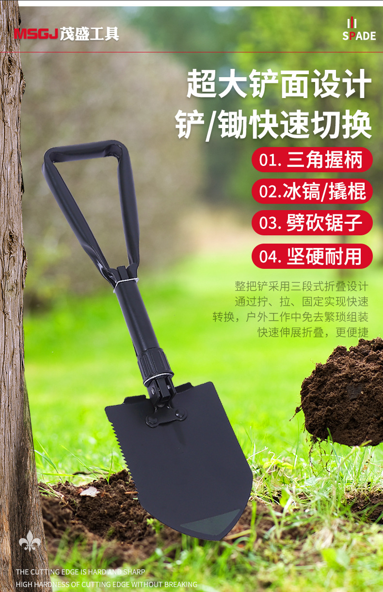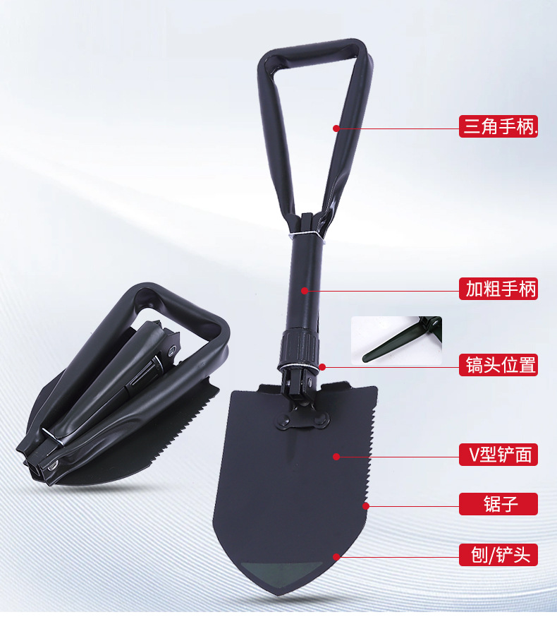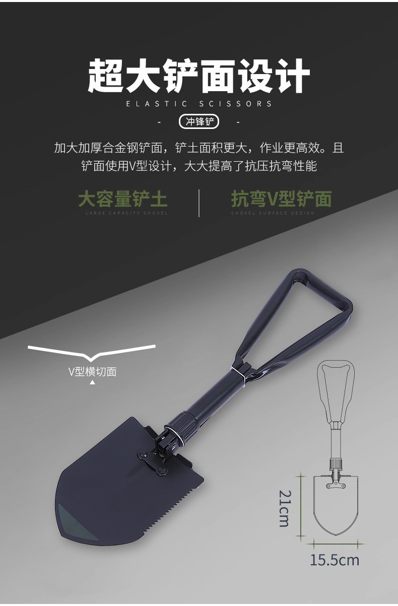 다기능 접이식 삽 다기능 엔지니어링 삽 접이식 휴대용 비상 구조 낚시 꽃 삽 야외 야생