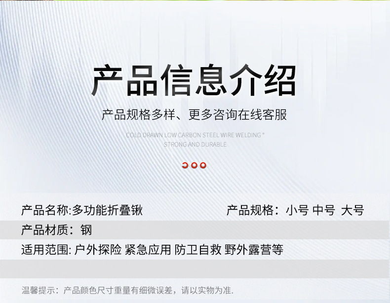 다기능 접이식 삽 다기능 엔지니어링 삽 접이식 휴대용 비상 구조 낚시 꽃 삽 야외 야생스토어 가기