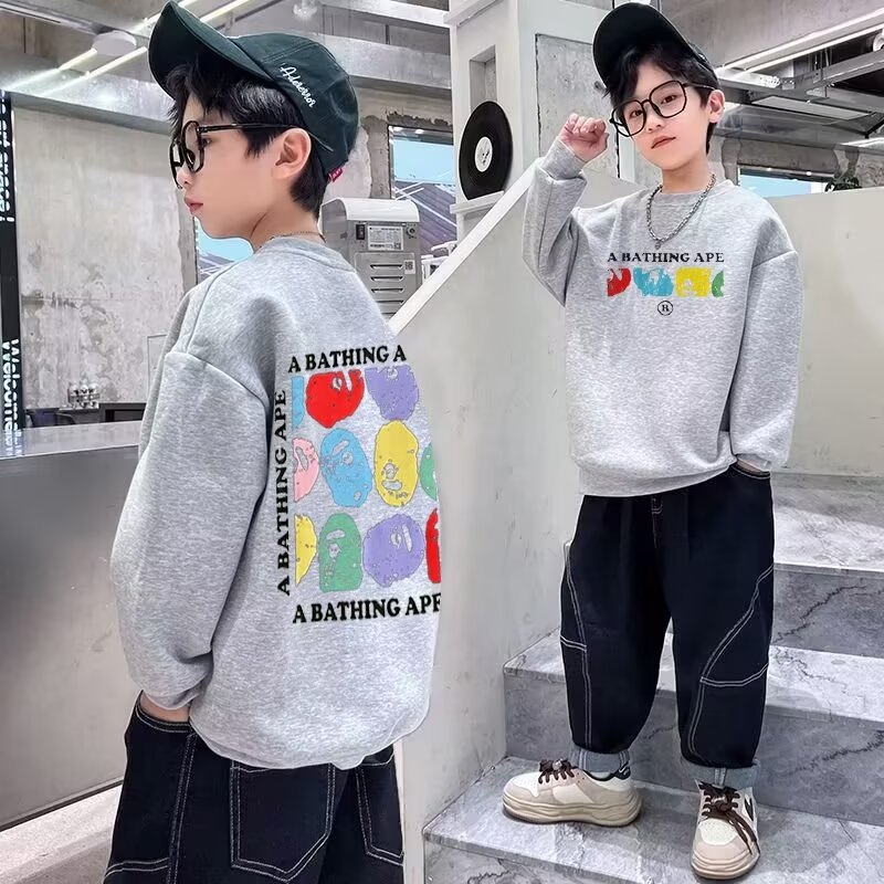 어린이 의류 소년 잘 생긴 스웨트 셔츠 2024 새로운 어린이 가을 및 겨울 캐주얼 올 매치 보이 겨울 거리 겨울복스토어 가기