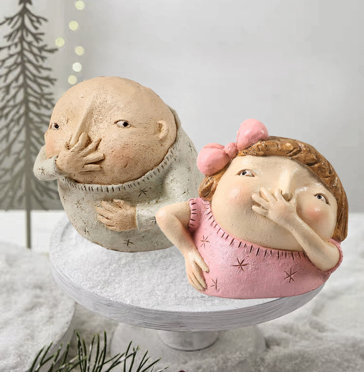 국경 간 새로운 성격 소녀 소년 코 핀치 동상 욕실 저속한 조각 수지 장식 커플 세례