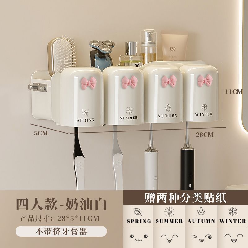 가족 칫솔 선반 수납 선반 어린이 컵 구강 세척제 컵 벽걸이 칫솔 컵 3인 가족 및 4인 가족 칫솔 홀더