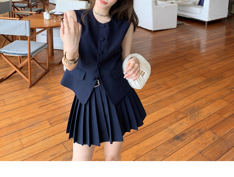 여름 여성을 위한 스타 유럽 패션 조끼 정장 새로운 한국식 슬리밍 플리츠 스커트 투피스 세트스토어 가기
