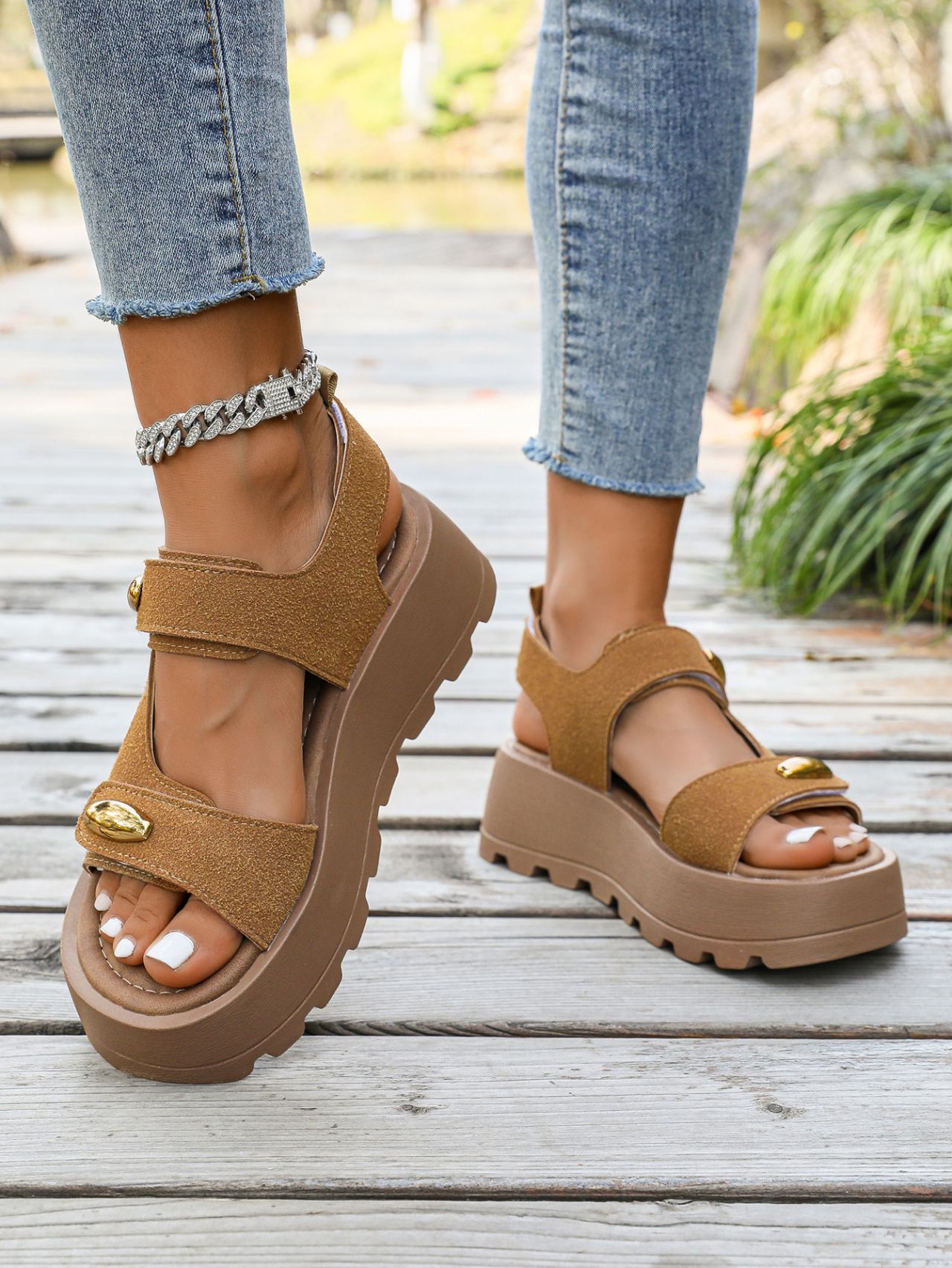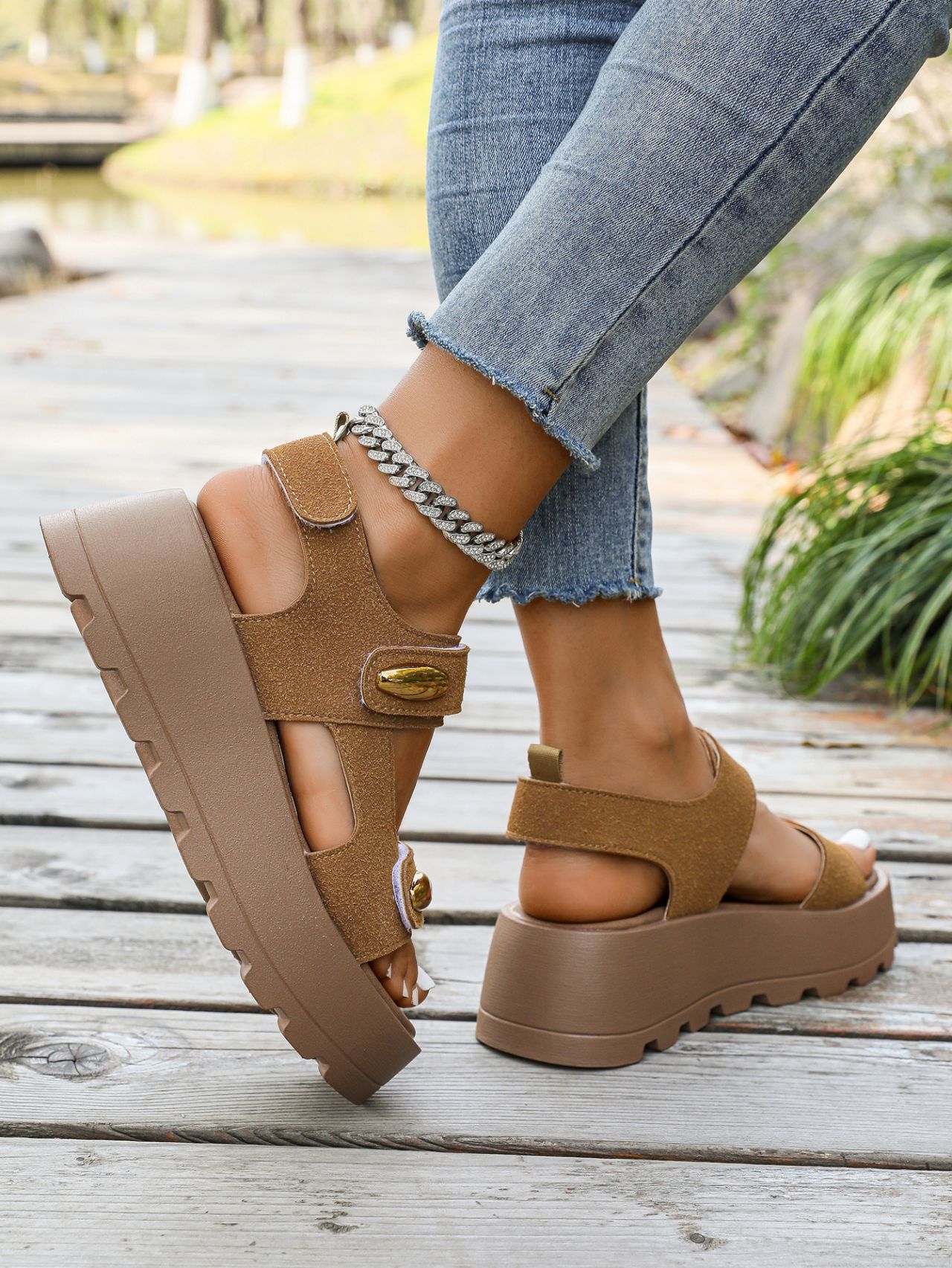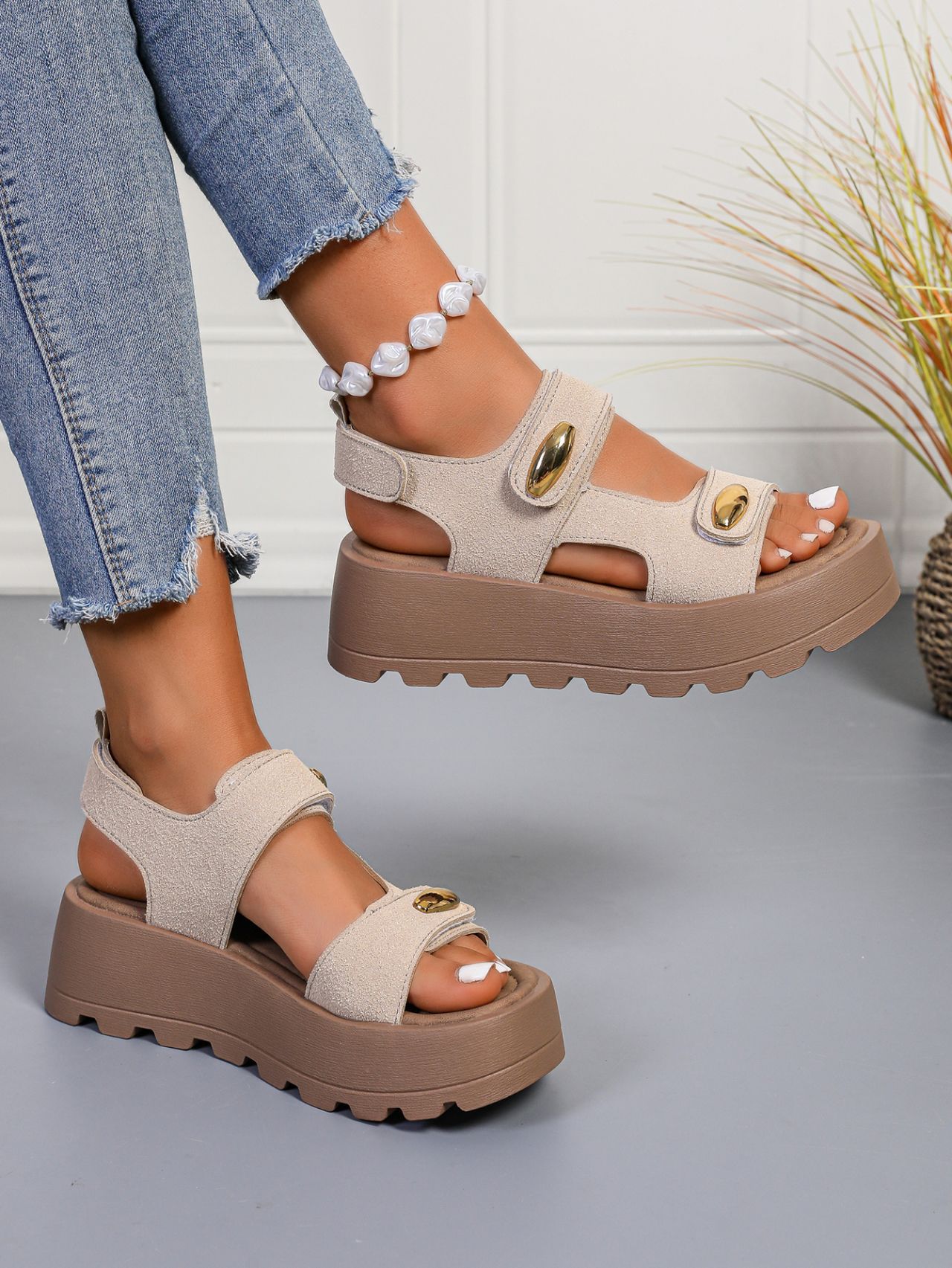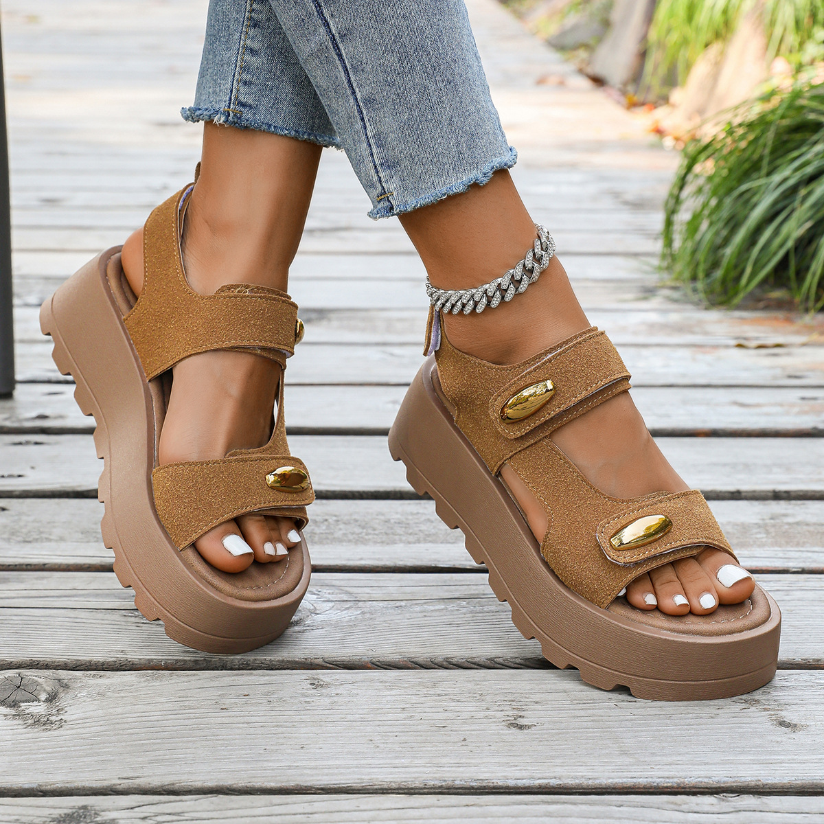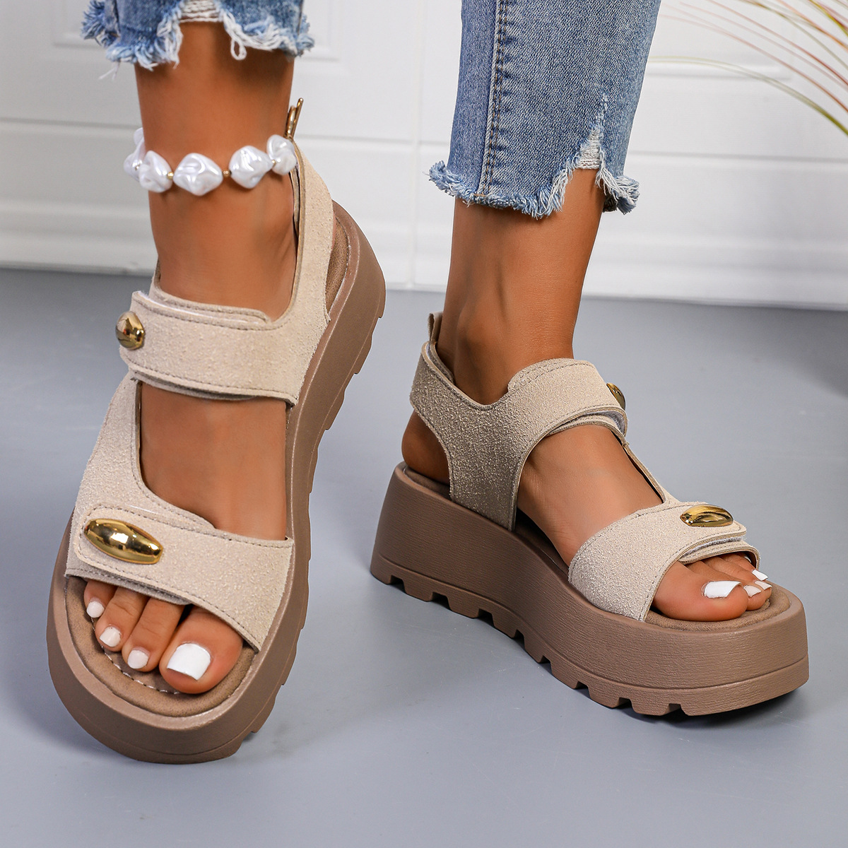 빈티지 두꺼운 밑창 높이 증가 샌들 여자 2025 년 여름 새로운 미끄럼 방지 소프트 밑창 올 매치 캐주얼 스포츠 비치 샌들스토어 가기