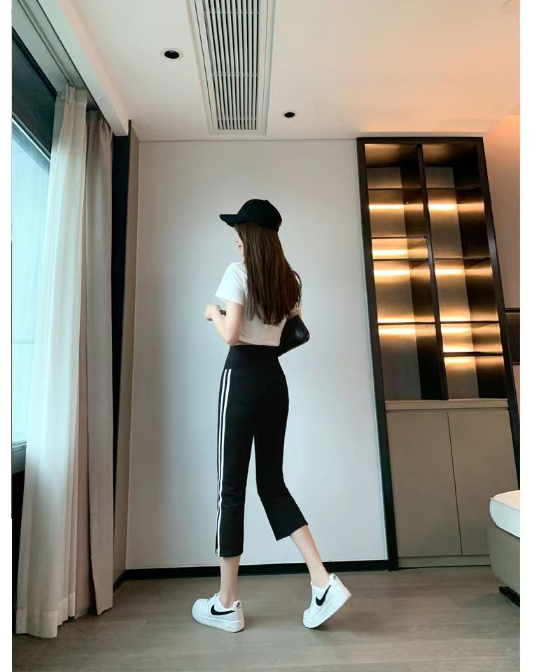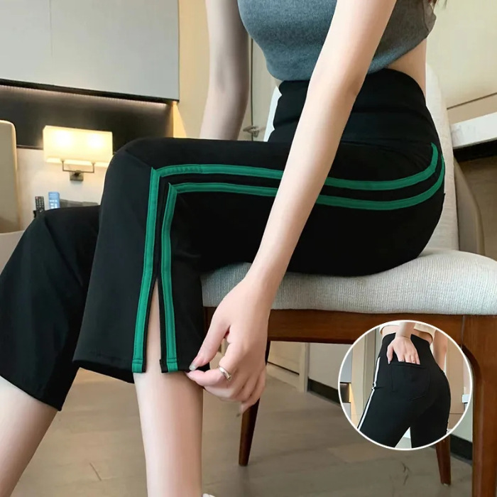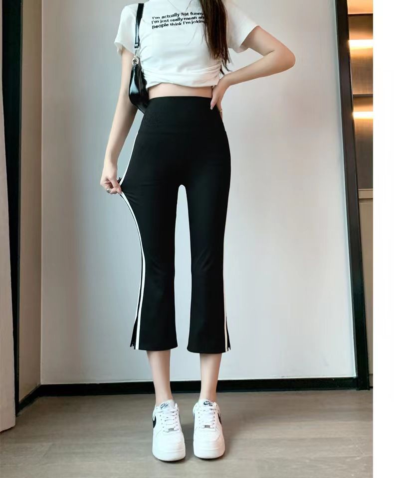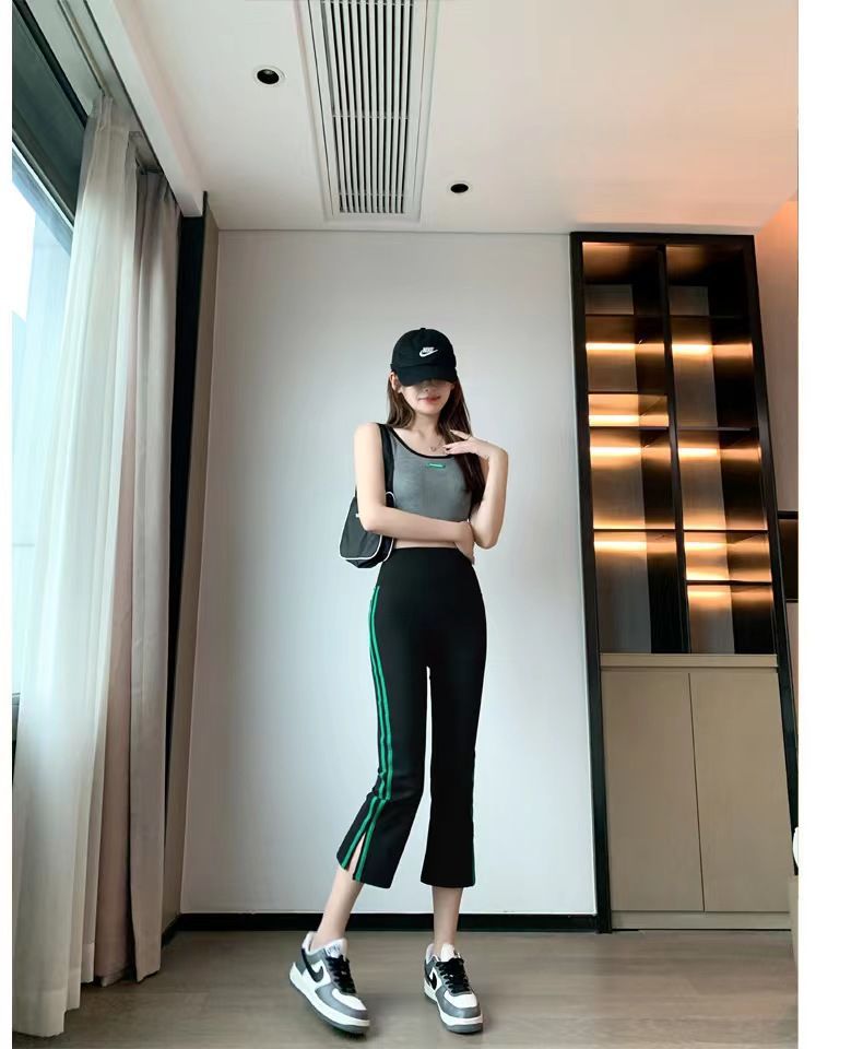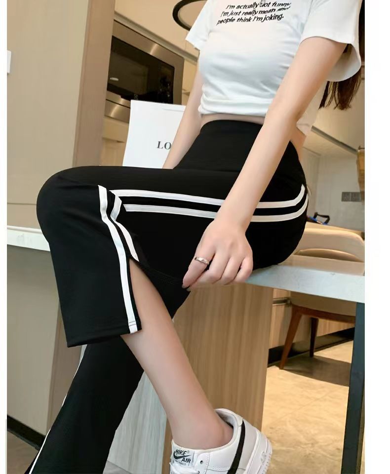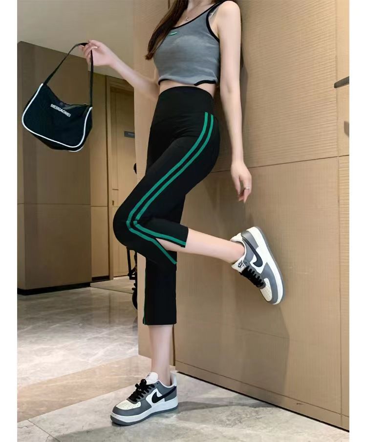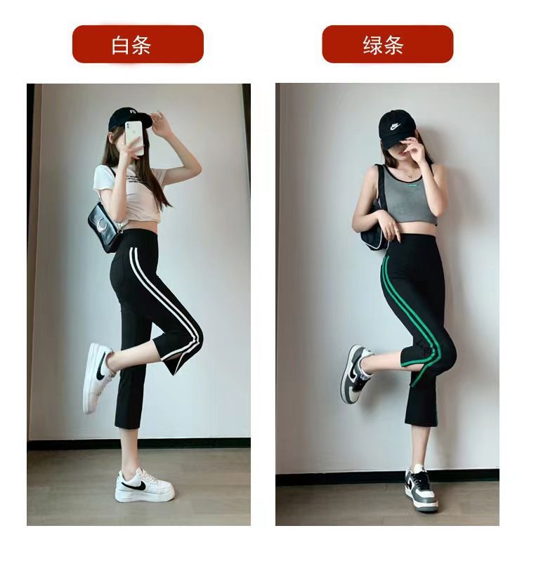 사이드 슬릿 스트라이프 마이크로-8 상어 바지 여성용 외부 착용 여름 얇은 요가 스포츠 높은 허리 배꼽 바지스토어 가기