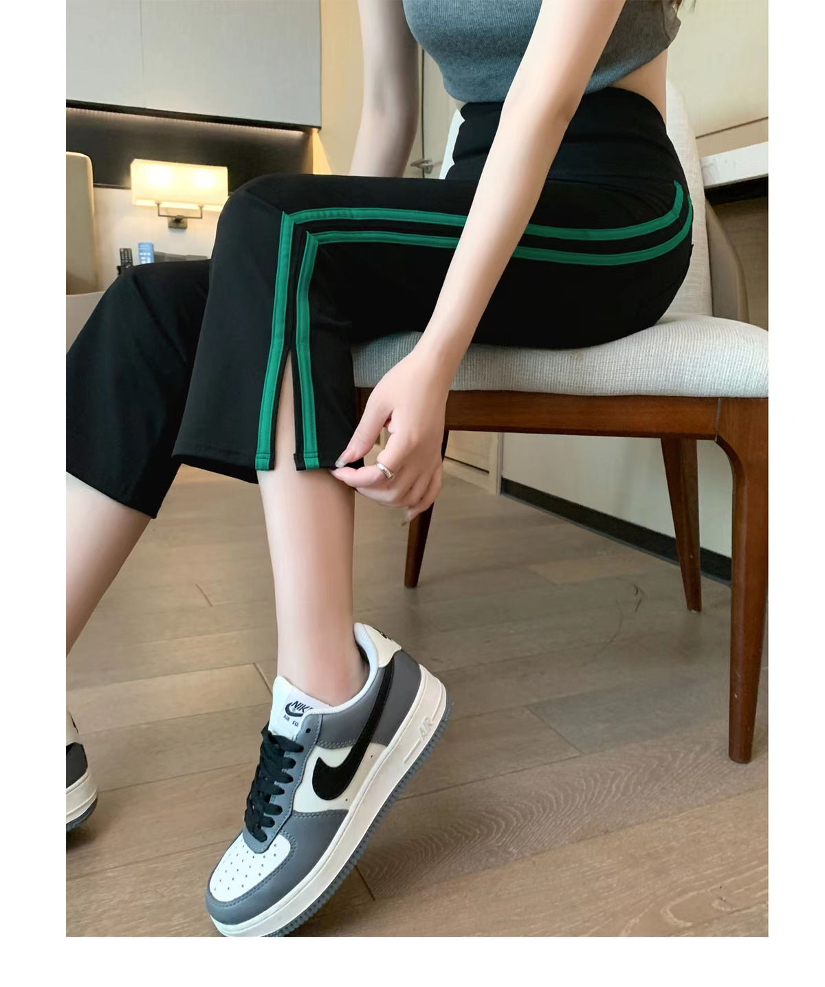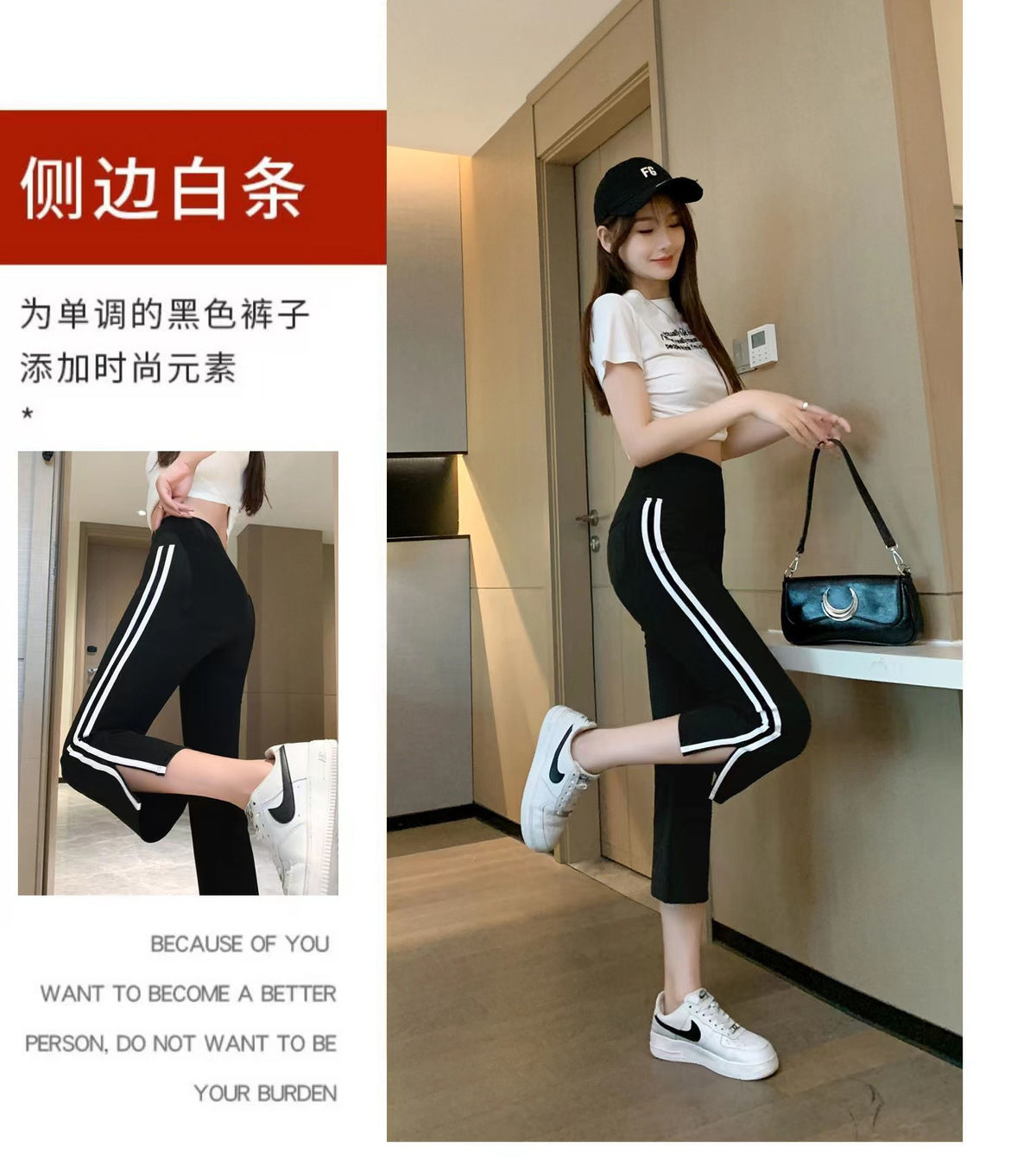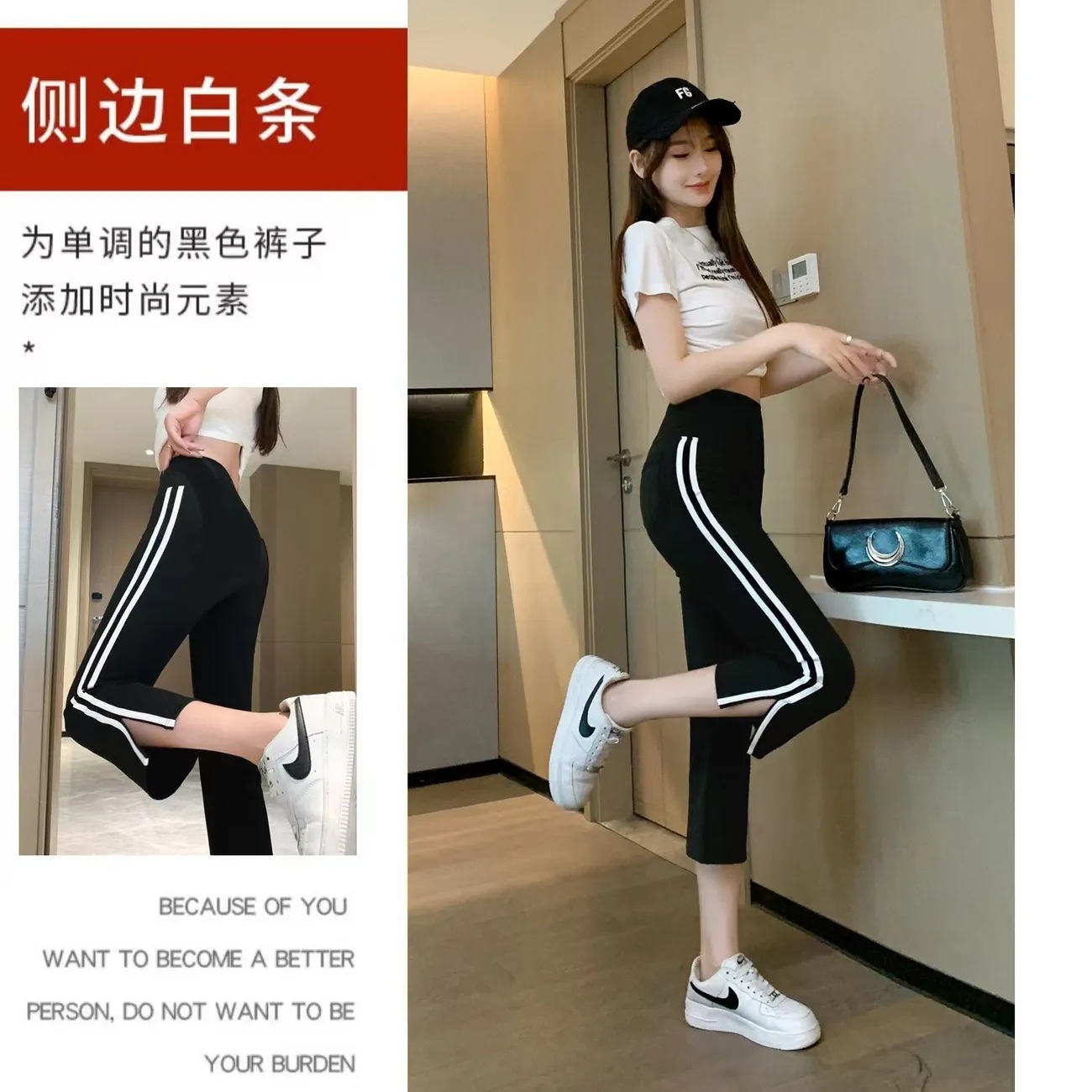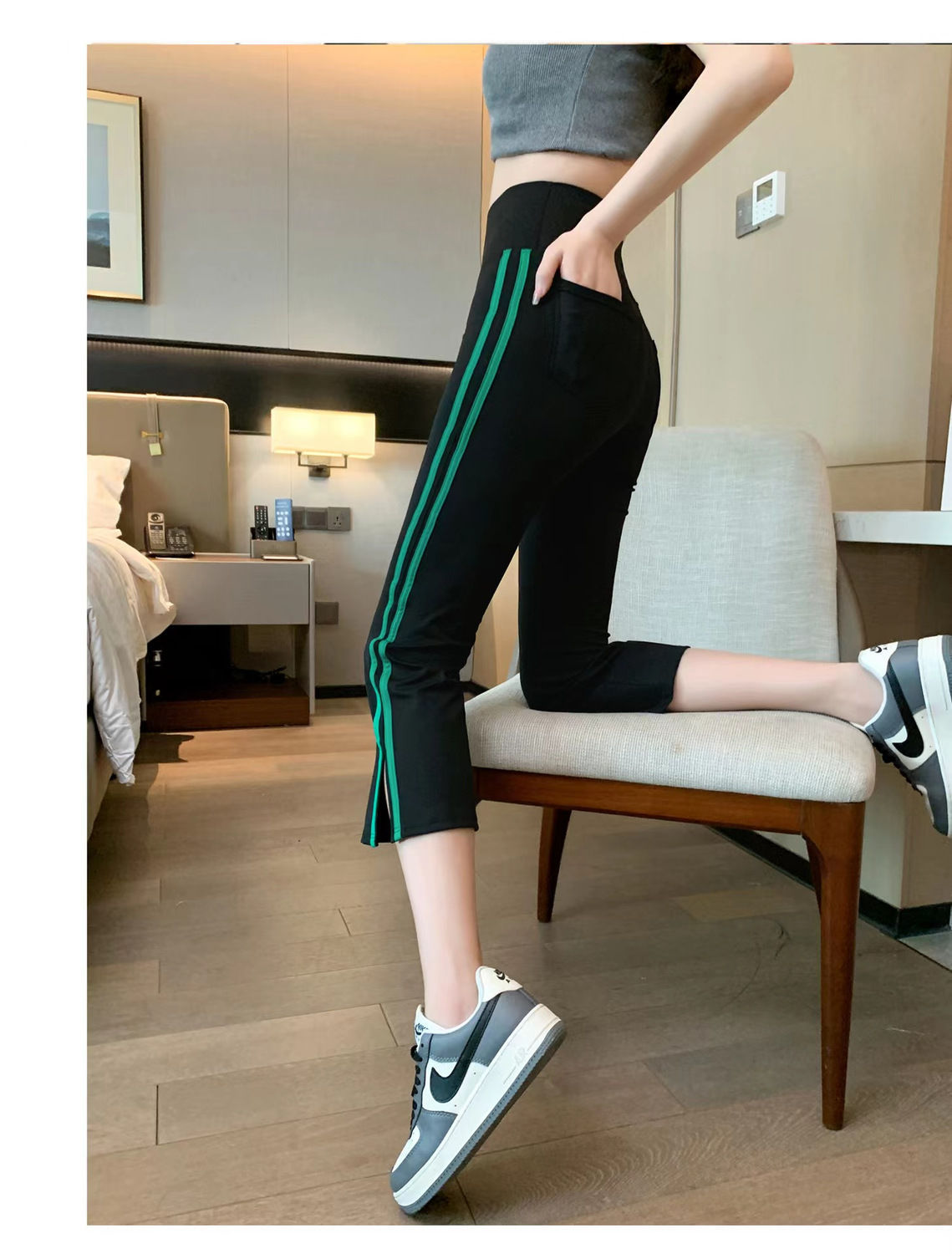 사이드 슬릿 스트라이프 마이크로-8 상어 바지 여성용 외부 착용 여름 얇은 요가 스포츠 높은 허리 배꼽 바지스토어 가기
