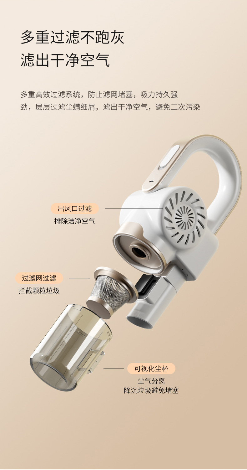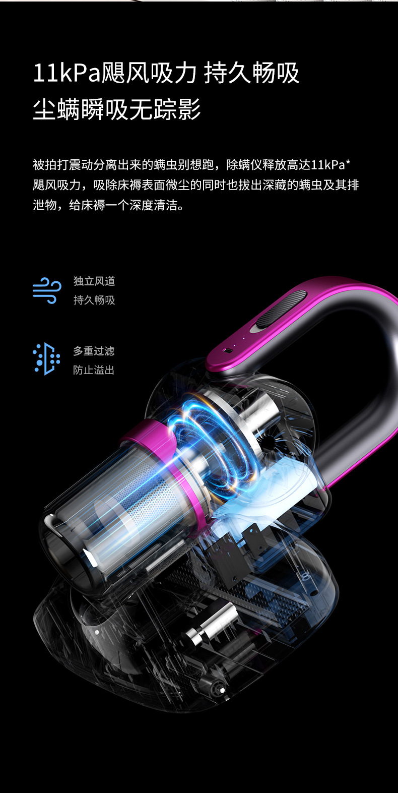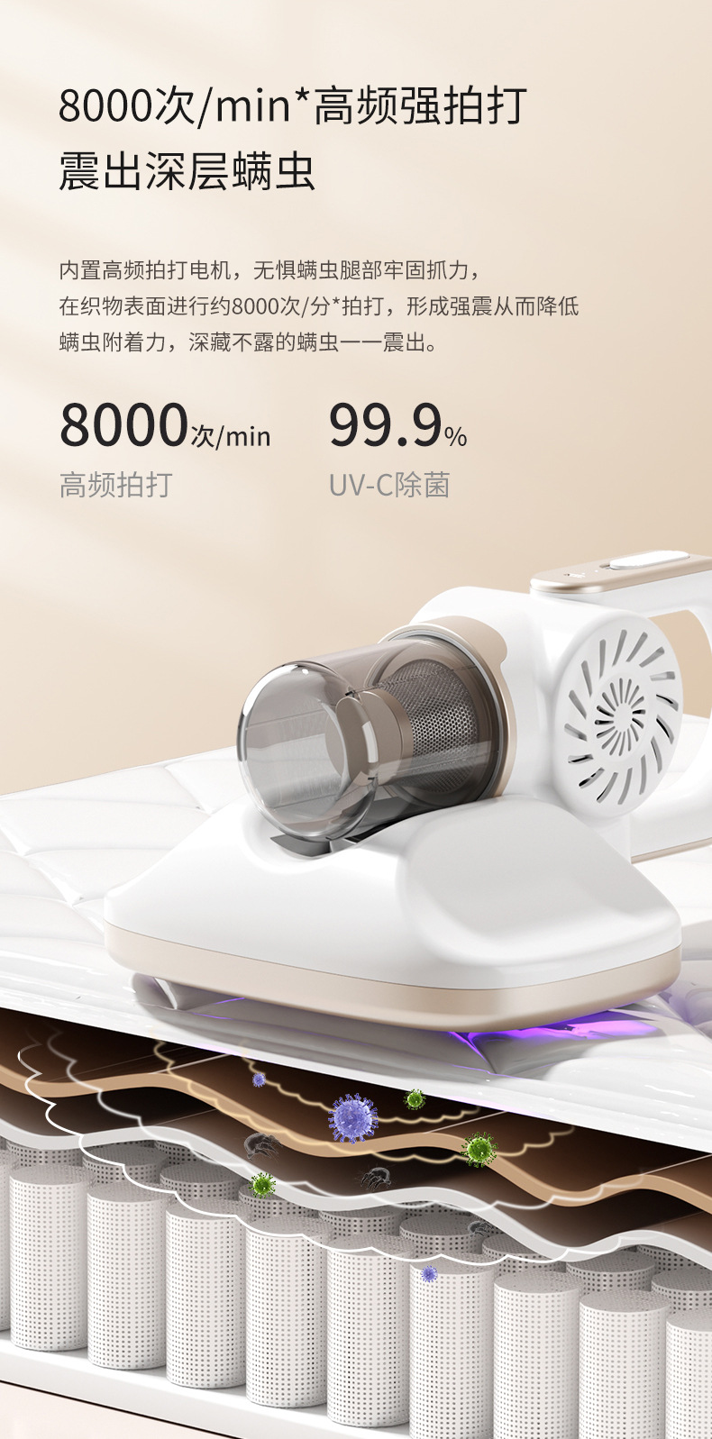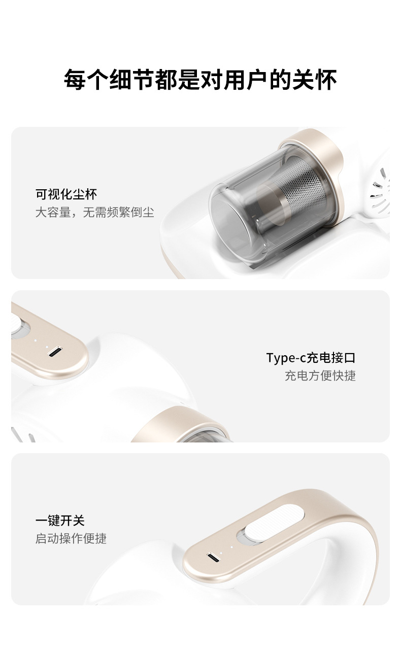 产品配件:主机*1、地板刷连接管*2、地板刷*1、二合一扁吸*1、除螨头*1