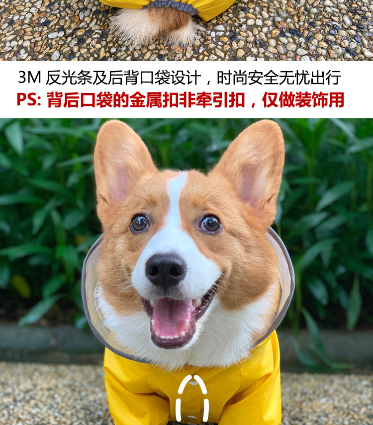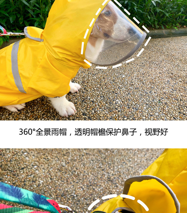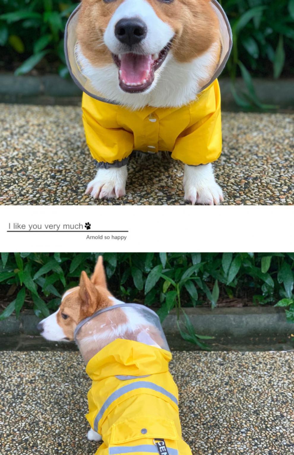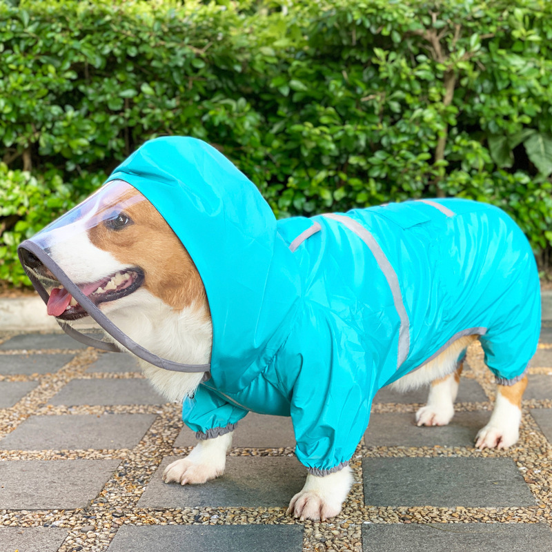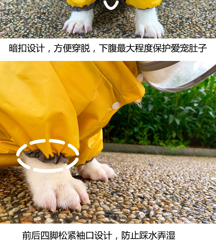 발을 감싸주는 강아지 비옷, 사각발 방수 시바견 코기 특수 강아지 비옷, 애완동물 일체형 소형견 비오는 날 도구스토어 가기