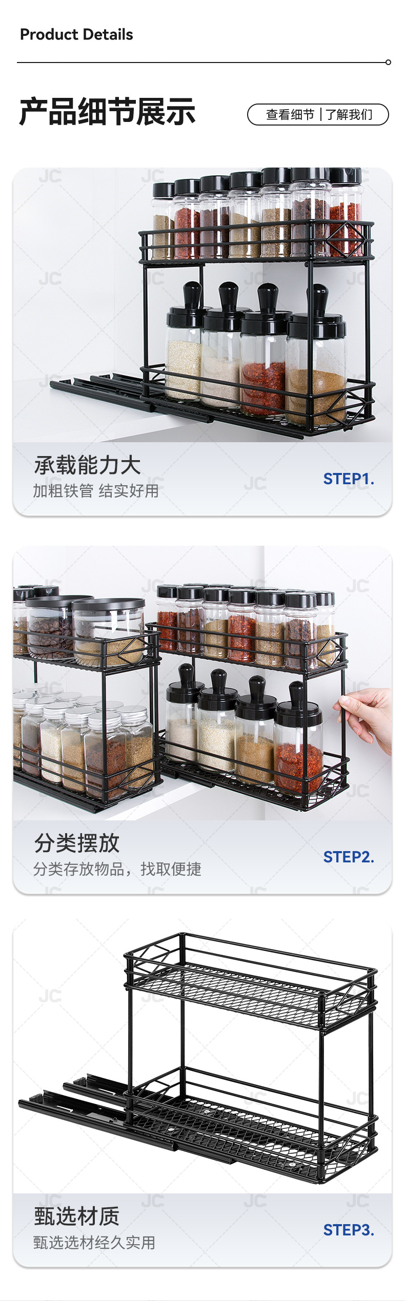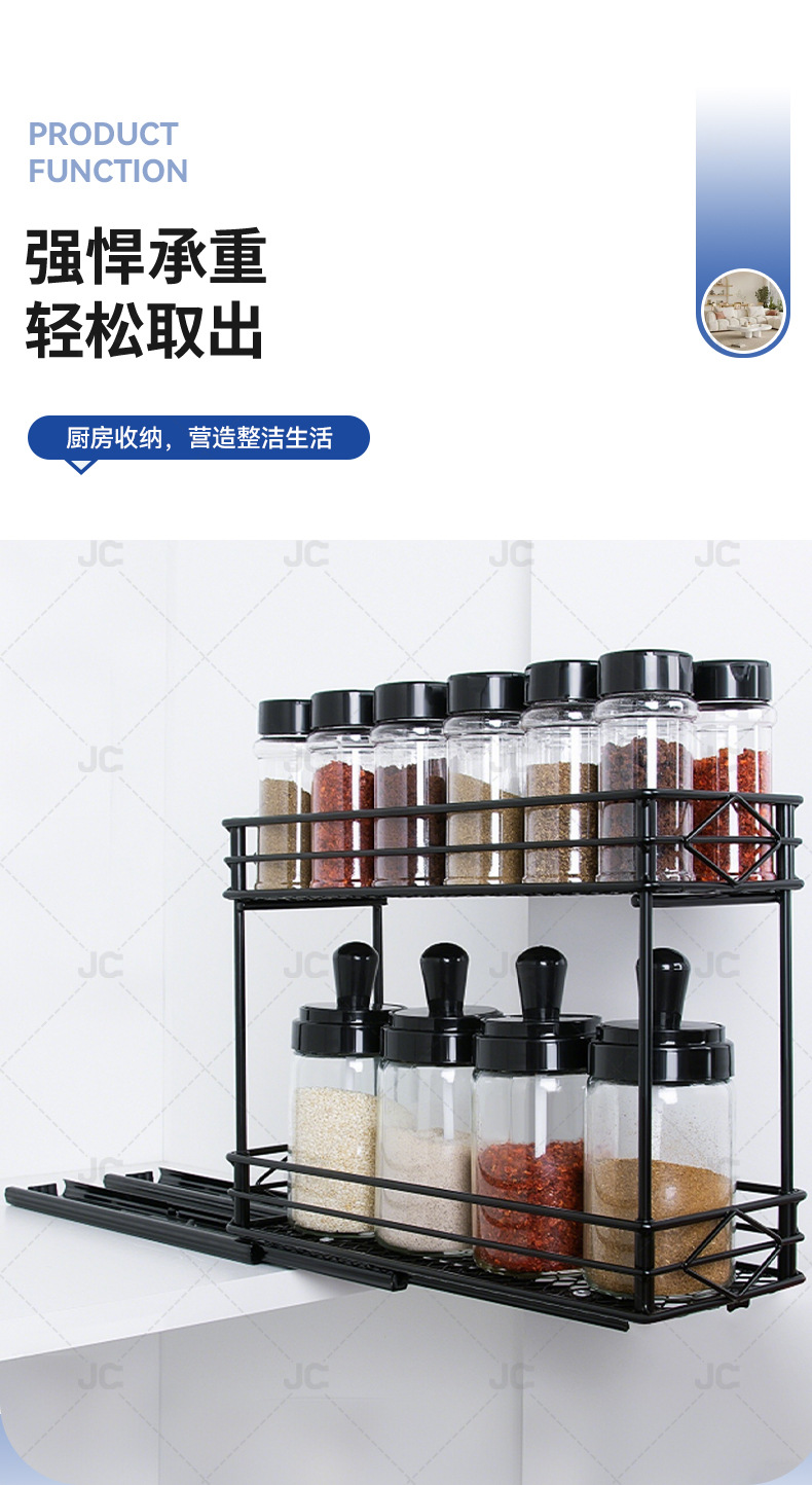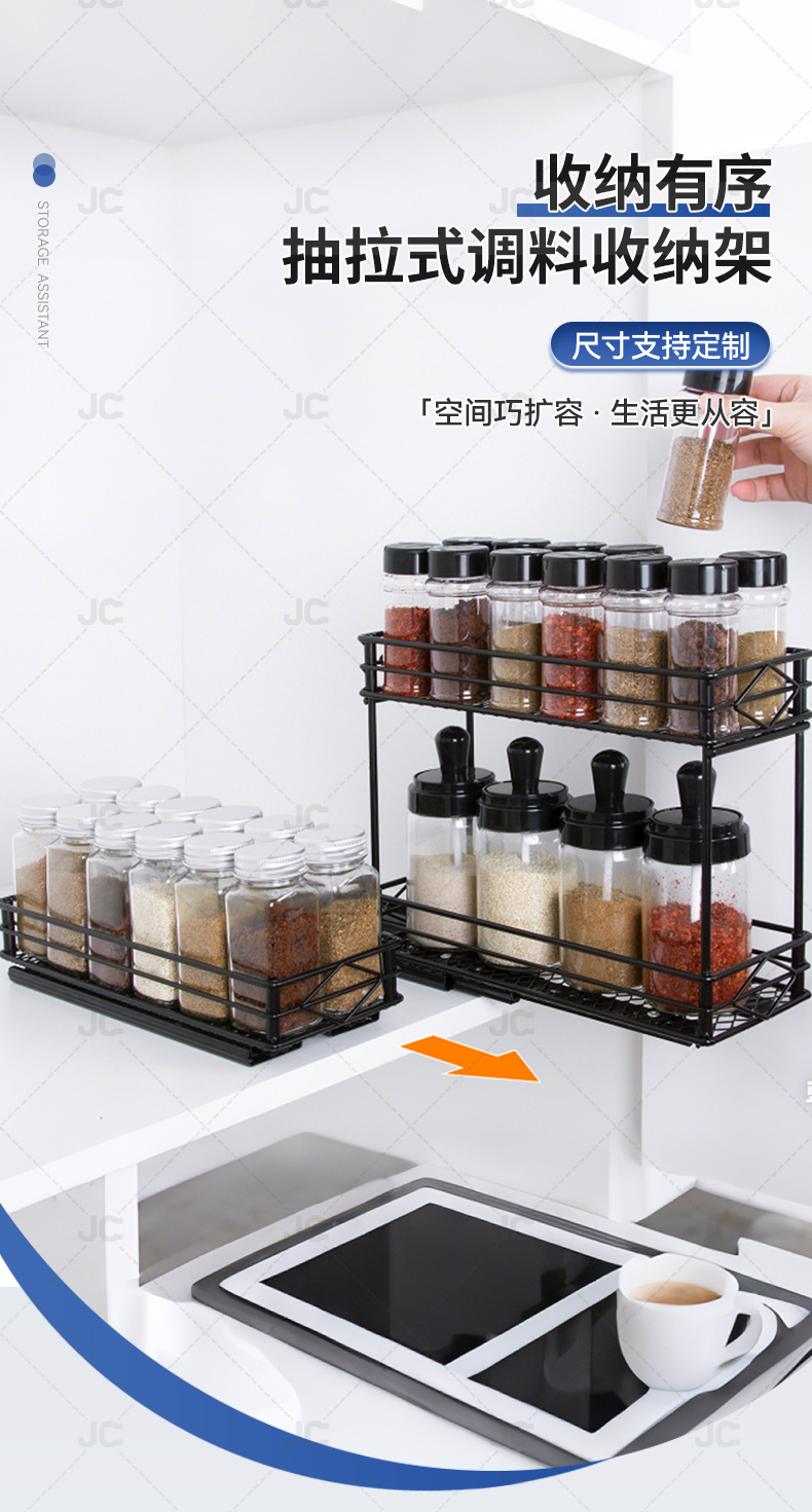 국경 간 새로운 캐비닛 인출 가능한 조미료 랙 더블 레이어 저장 바구니 주방 싱크 스파이스 랙 도매