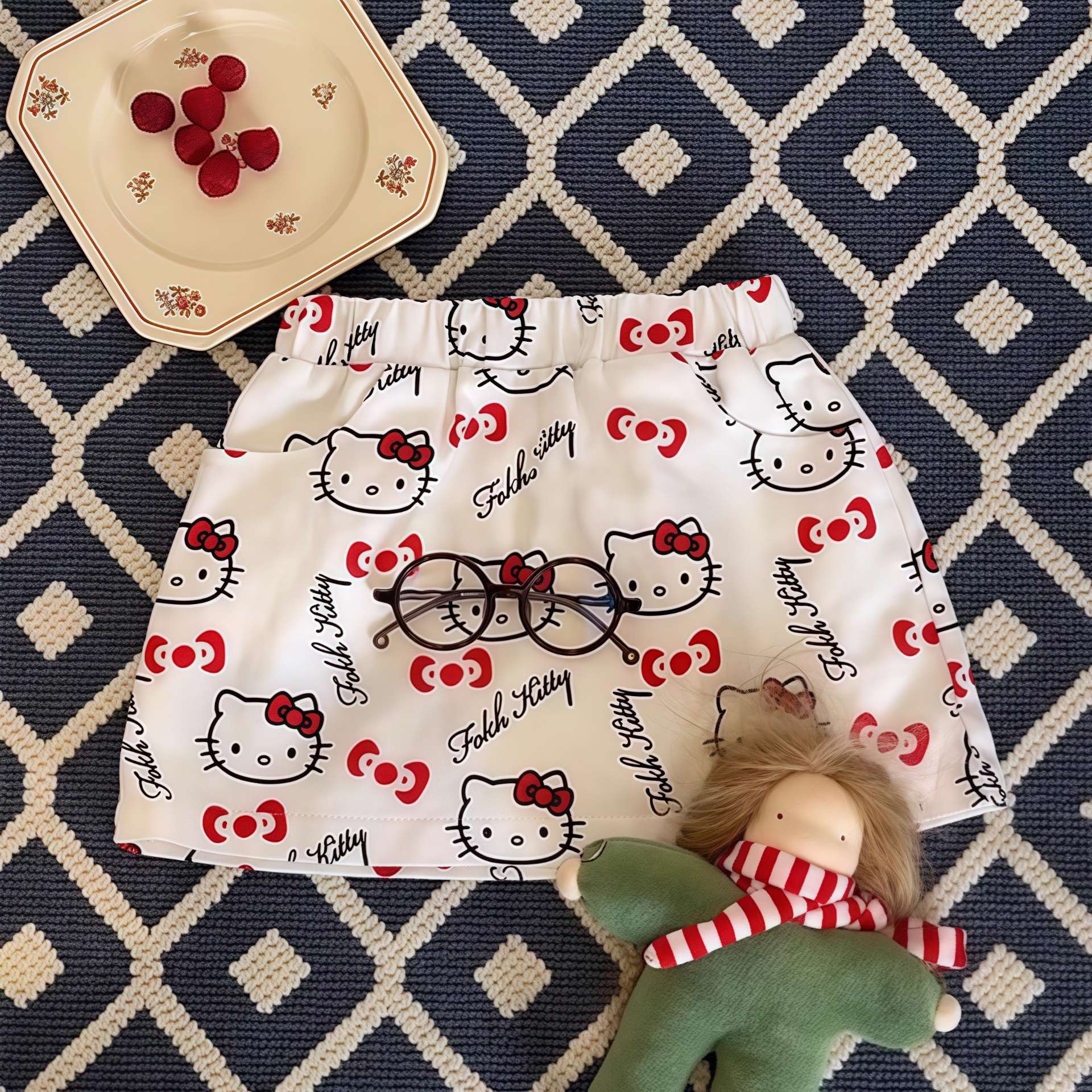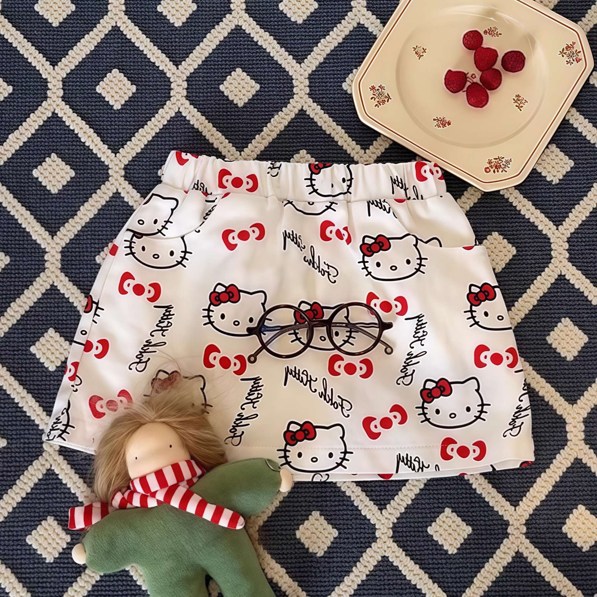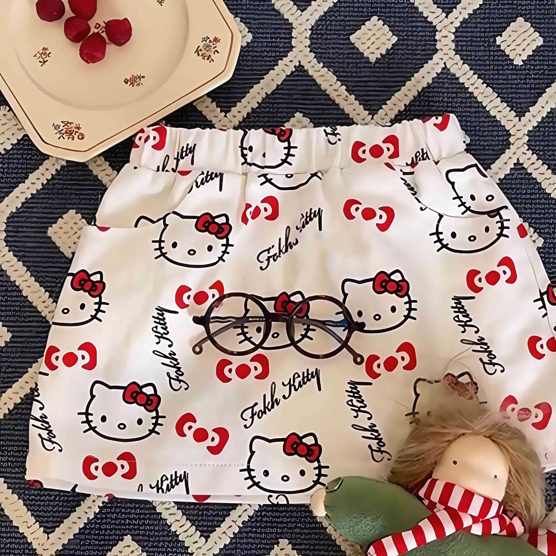2025 소녀의 새로운 짧은 치마 아기 소녀 여름 전체 인쇄 KT 고양이 만화 스커트 올 매치 서양식 인터넷 어린이 착용 기념