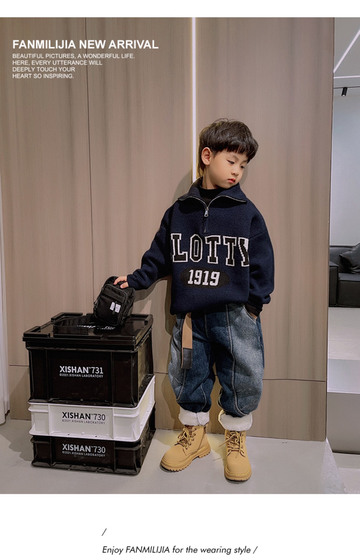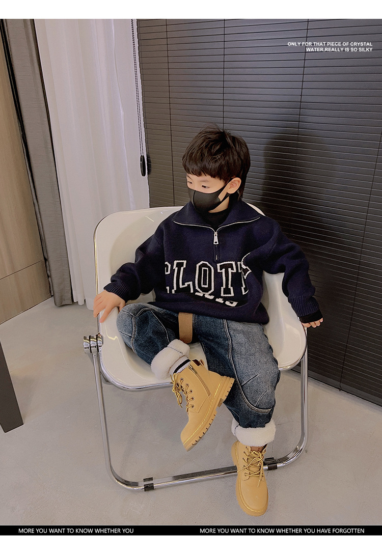 소년 빅 칼라 스웨터 캐주얼 어린이 겨울 하프 지프 스웨터 코트 잘 생긴 유행 의류 아동복스토어 가기