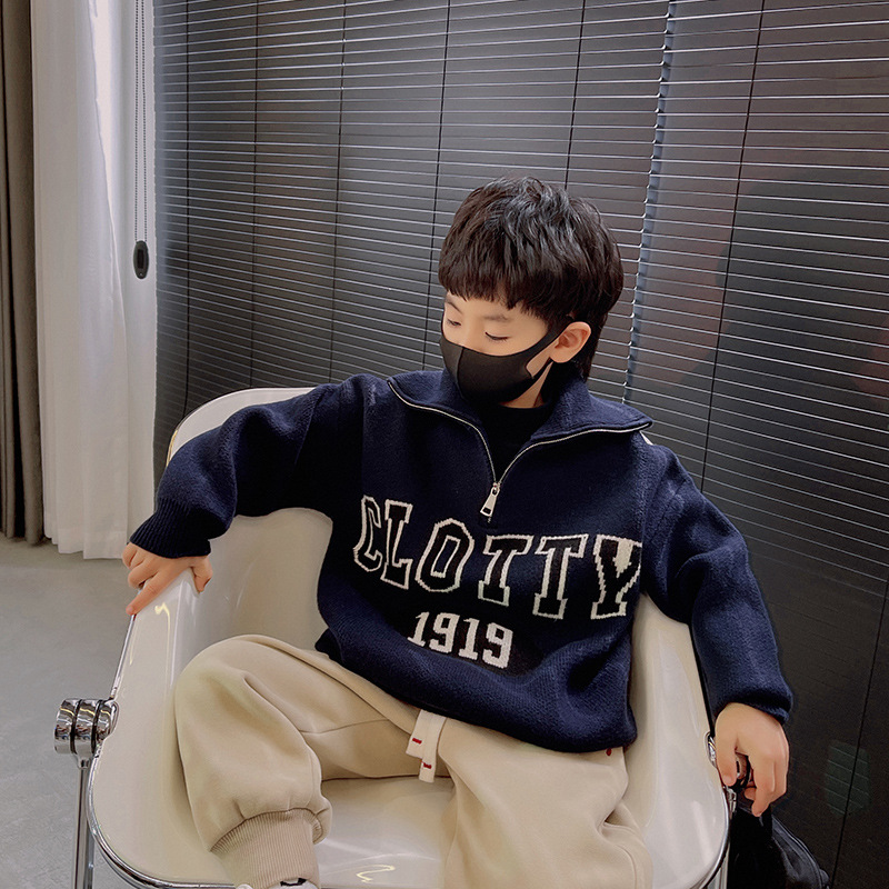 소년 빅 칼라 스웨터 캐주얼 어린이 겨울 하프 지프 스웨터 코트 잘 생긴 유행 의류 아동복