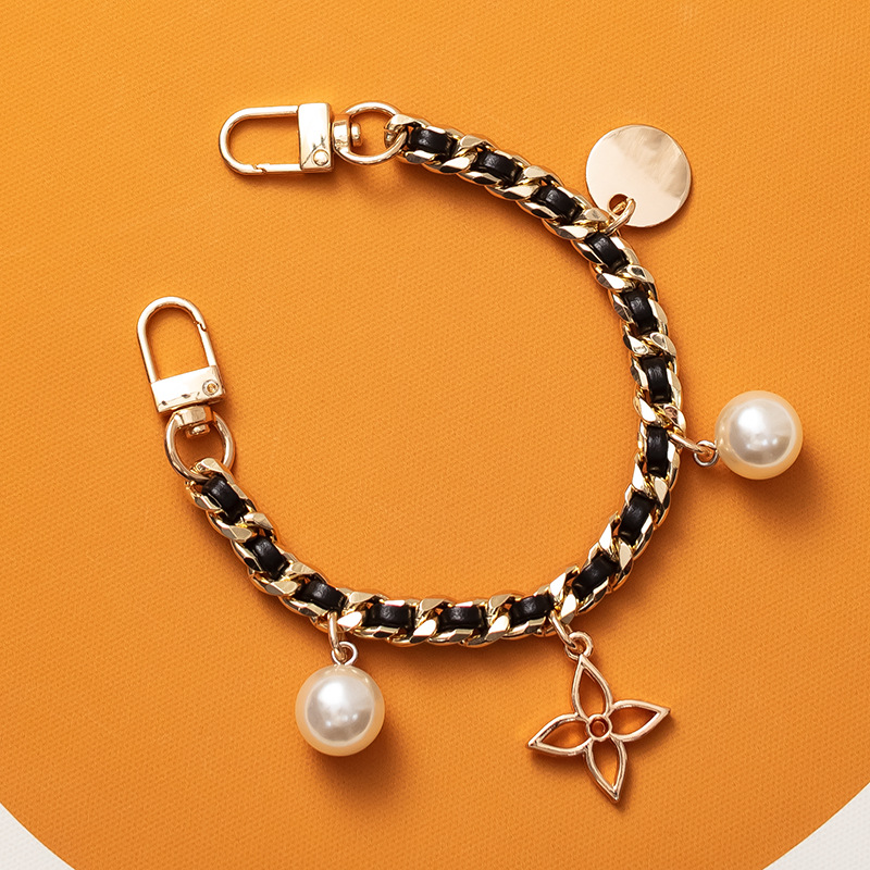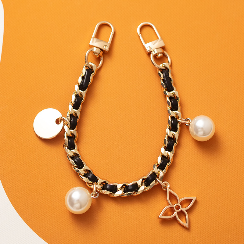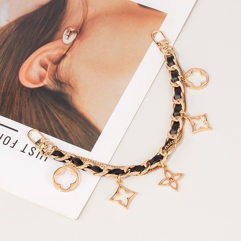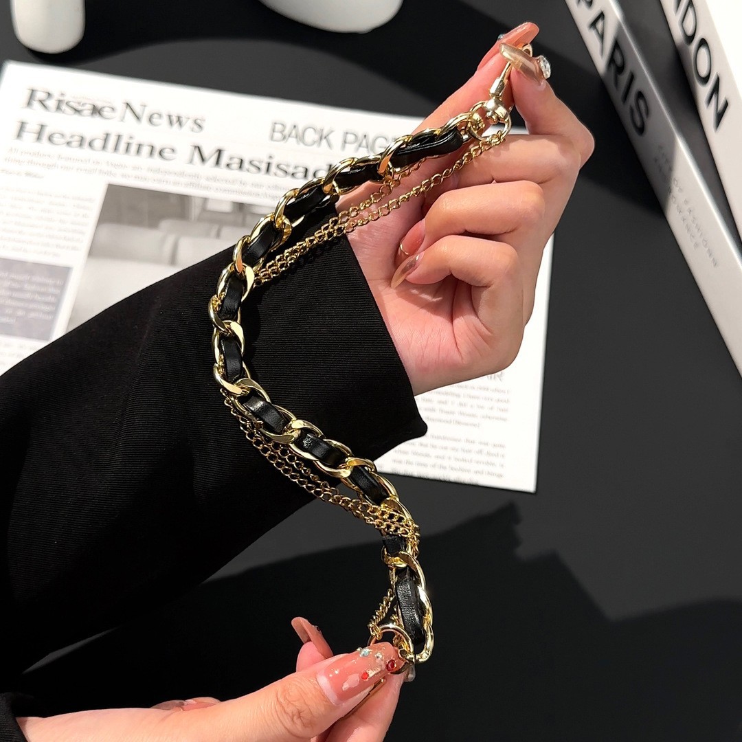 • 휴대폰 걸이 체인 골드 + 블랙 가죽 체인 벨트 펜던트 스타일