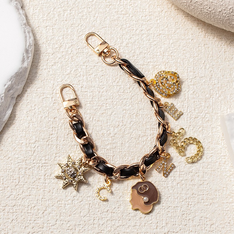 • 휴대폰 걸이 체인 골드 + 블랙 가죽 체인 펜던트 스타일 2