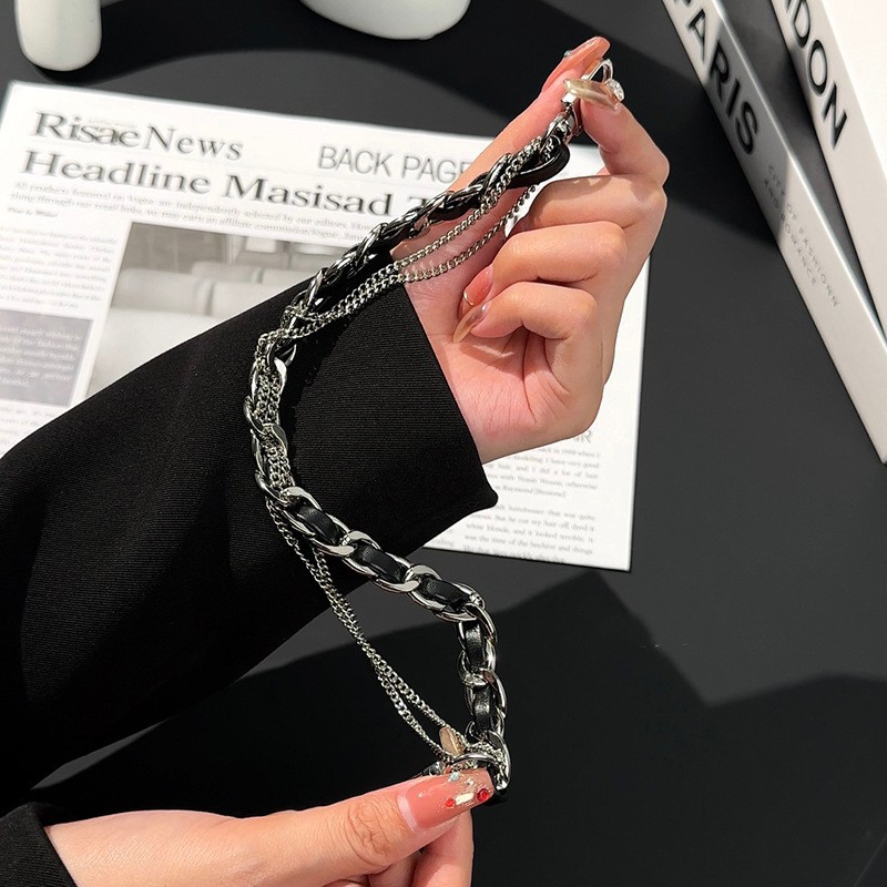 • 휴대폰 걸이 체인 실버 + 블랙 가죽 체인 스타일