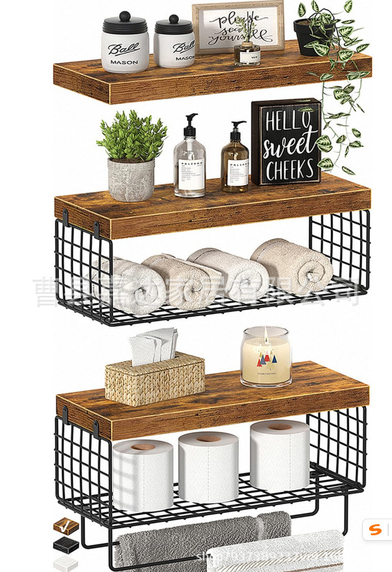 욕실 수납 선반, 주방 거실 벽걸이형 선반, 원목 벽걸이형 수납 선반, 욕실 슬리퍼 수납 선반