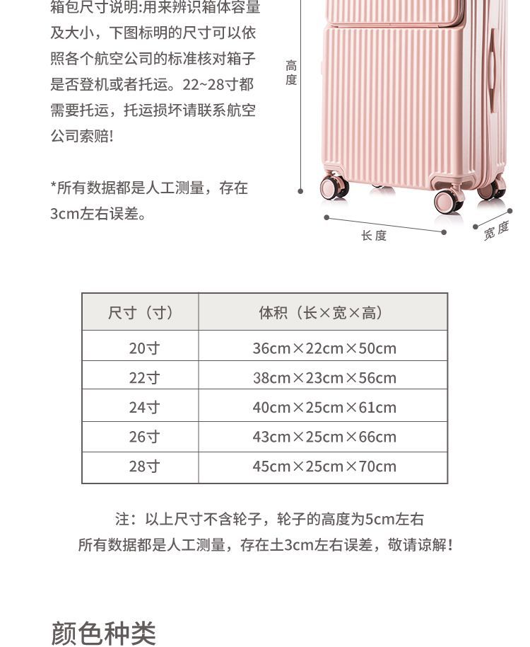 대용량 다기능 전면 오픈 뚜껑 수하물 케이스 소년 소녀를위한 20 인치 탑승 케이스 여행 트롤리 케이스스토어 가기