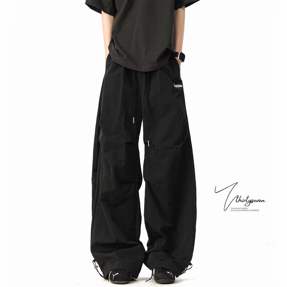아메리칸 레트로 플리츠 파라트리퍼 작업복 남성 여름 스트레이트 와이드 레그 세이버 팬츠 통기성 속건성 등산 팬츠스토어 가기
