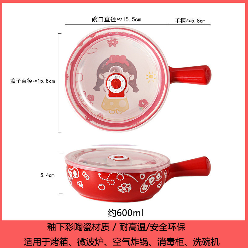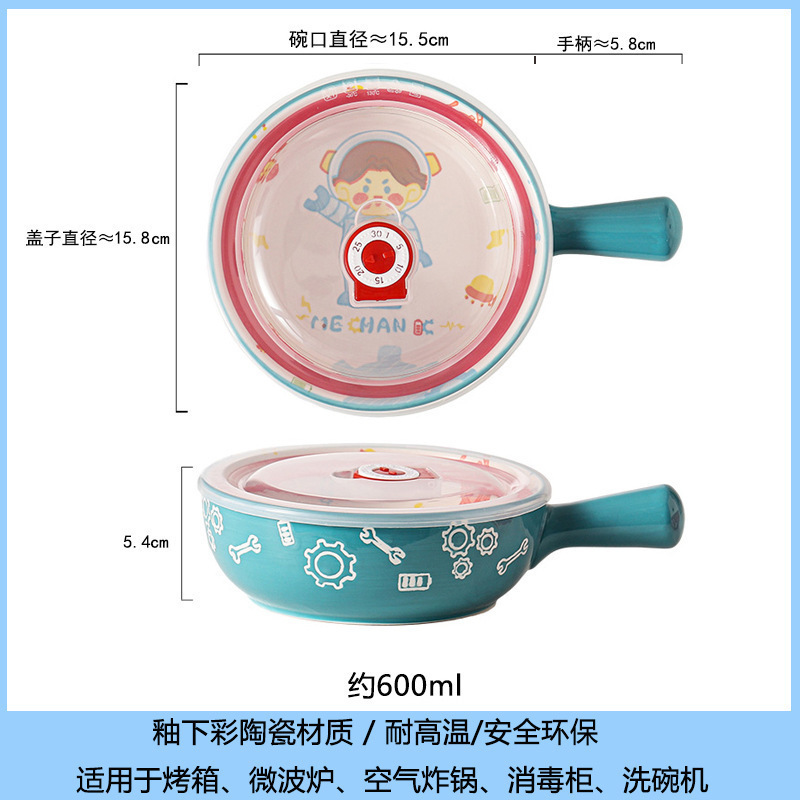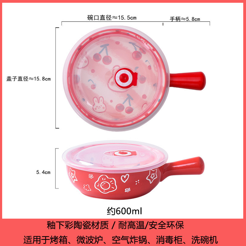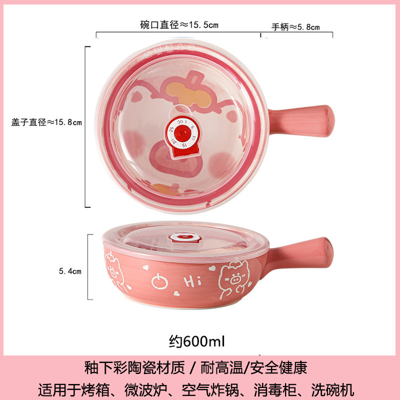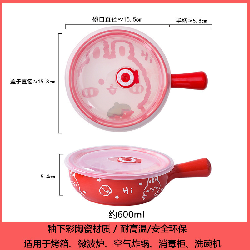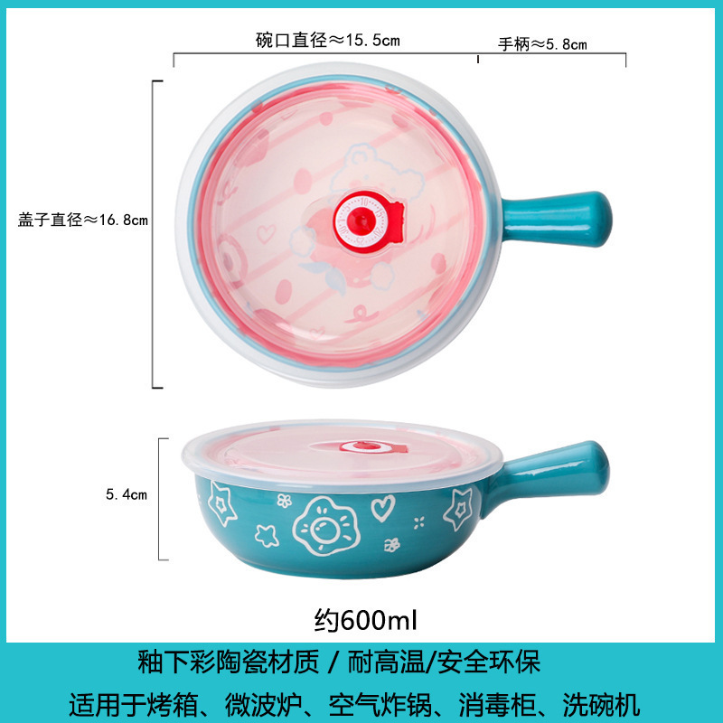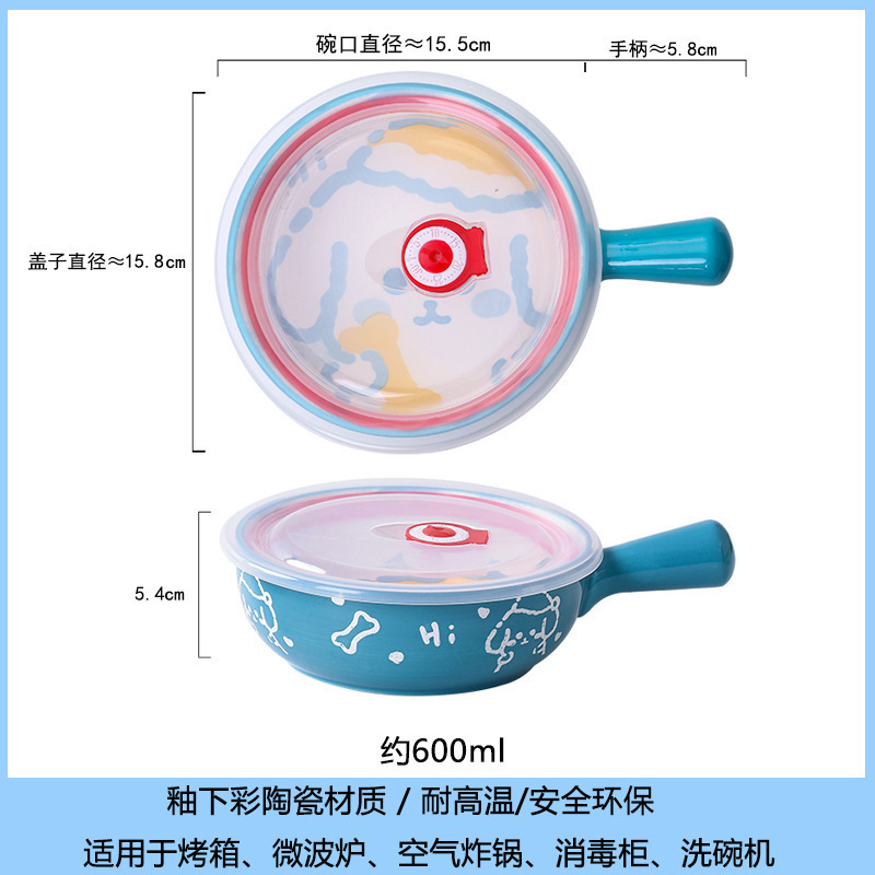 손잡이가있는 가정용 유약 컬러 세라믹 베이킹 그릇 귀여운 샐러드 그릇 만화 어린이 학생 기숙사 싱글 핸들 인스턴트 국수 그릇스토어 가기