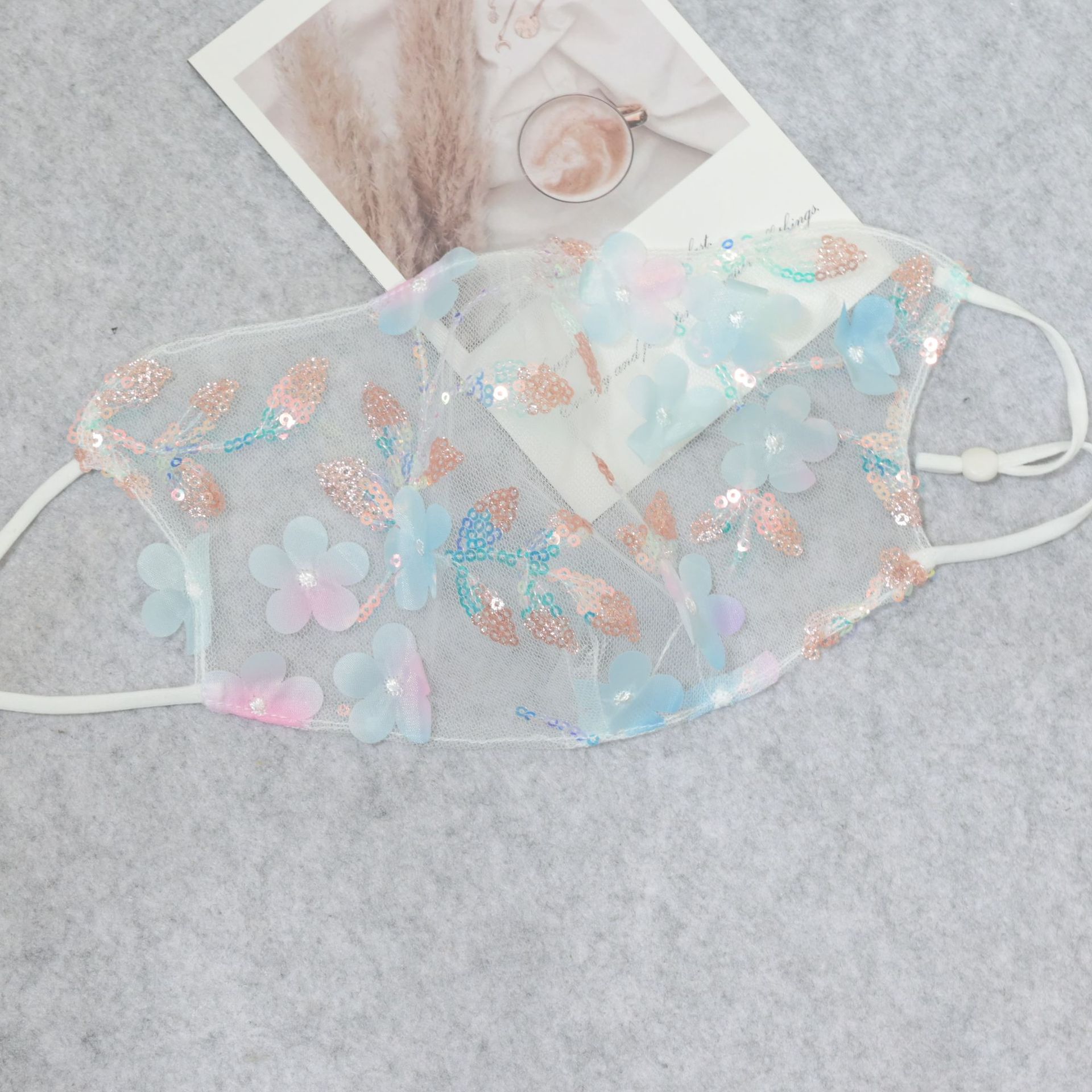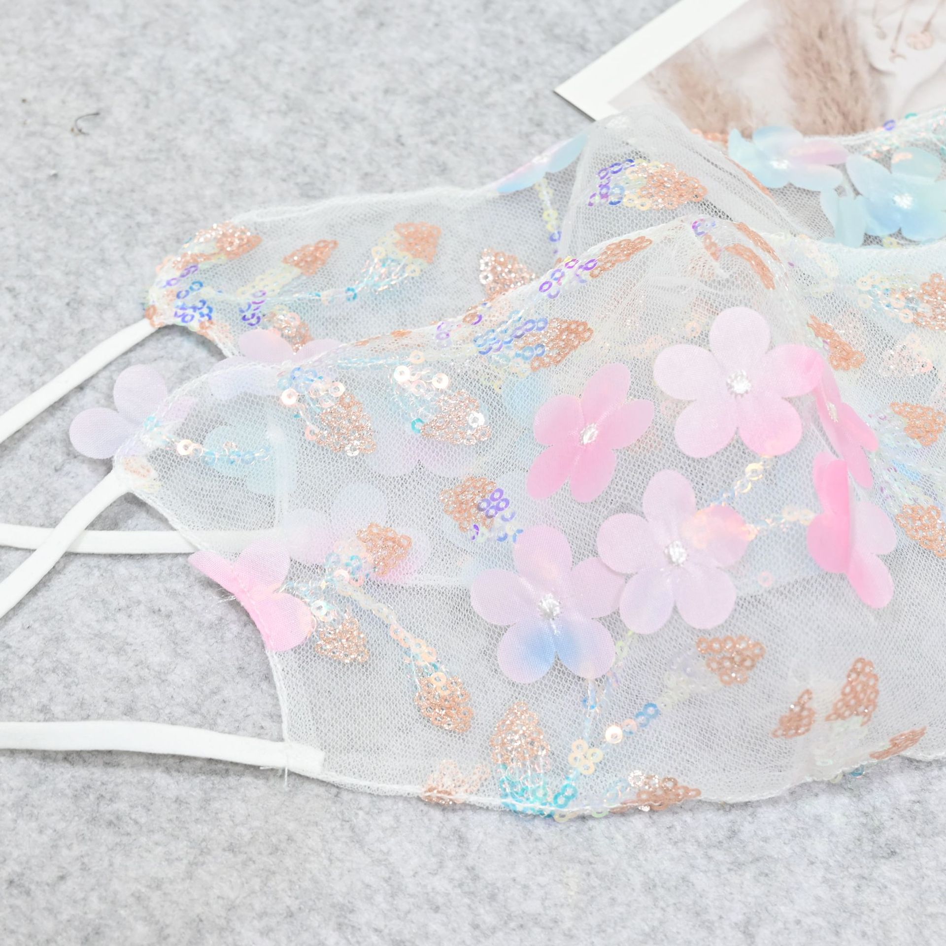 여름 새로운 달콤한 꽃 마스크 사이버 연예인 선스크린 통기성 레이스 속편 스테레오 노 메이크업 라이브 폭발스토어 가기
