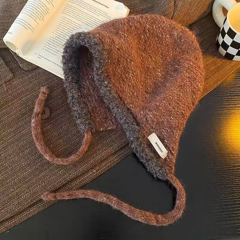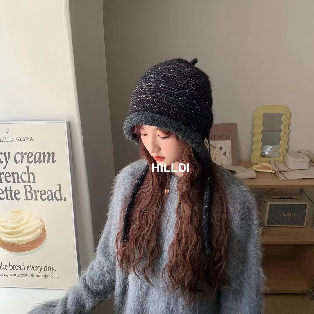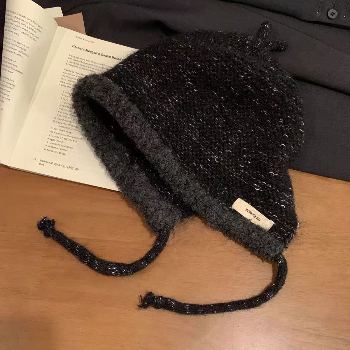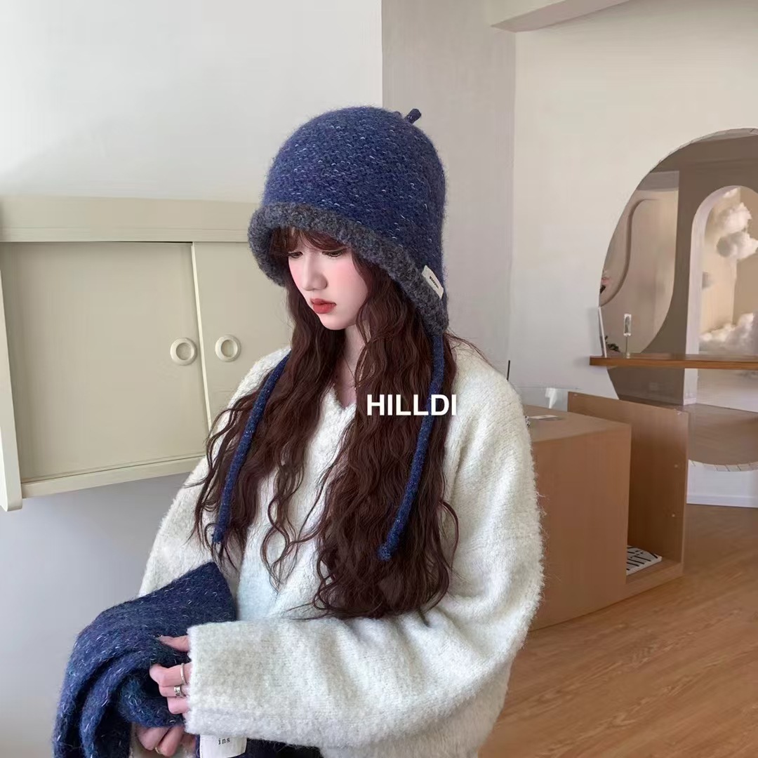 발라 클라 바 모자 스트랩 스택 모자 여성 가을 겨울 한국 스타일 따뜻한 올매치 니트 귀 보호 울 모자 트렌디스토어 가기