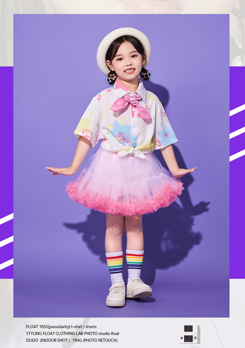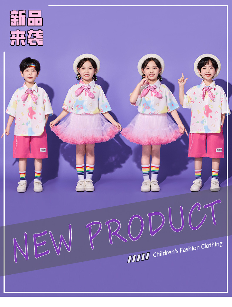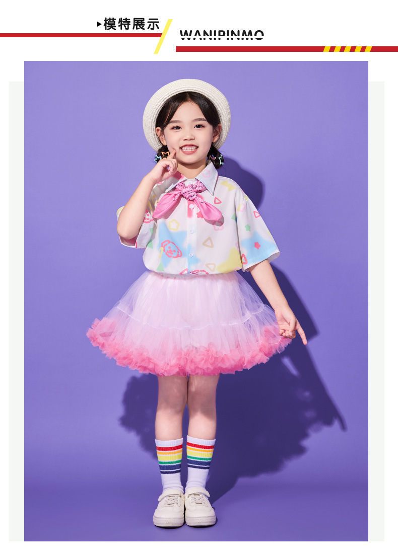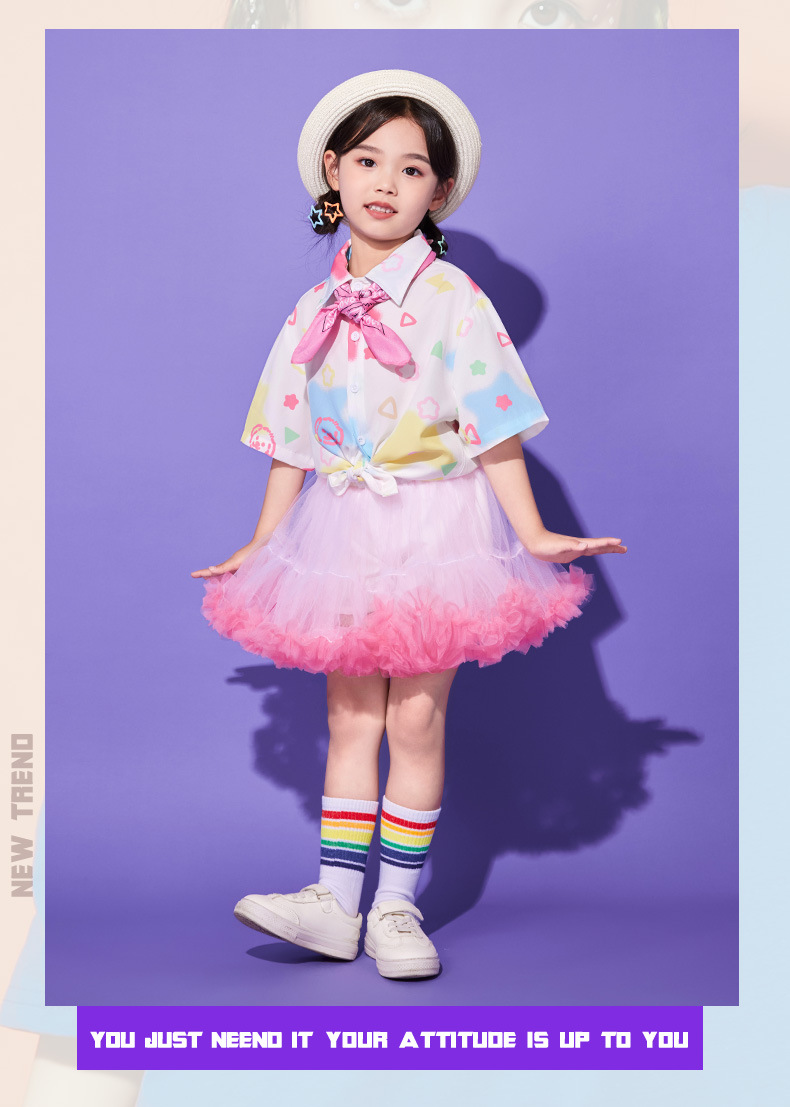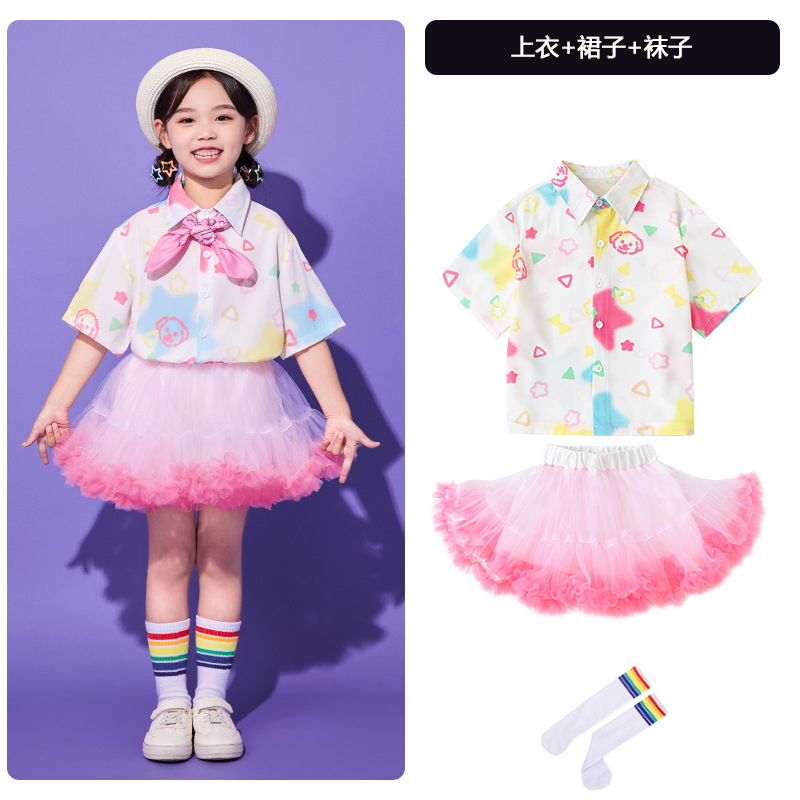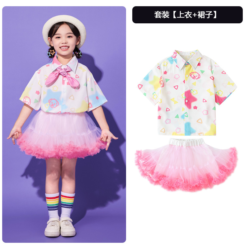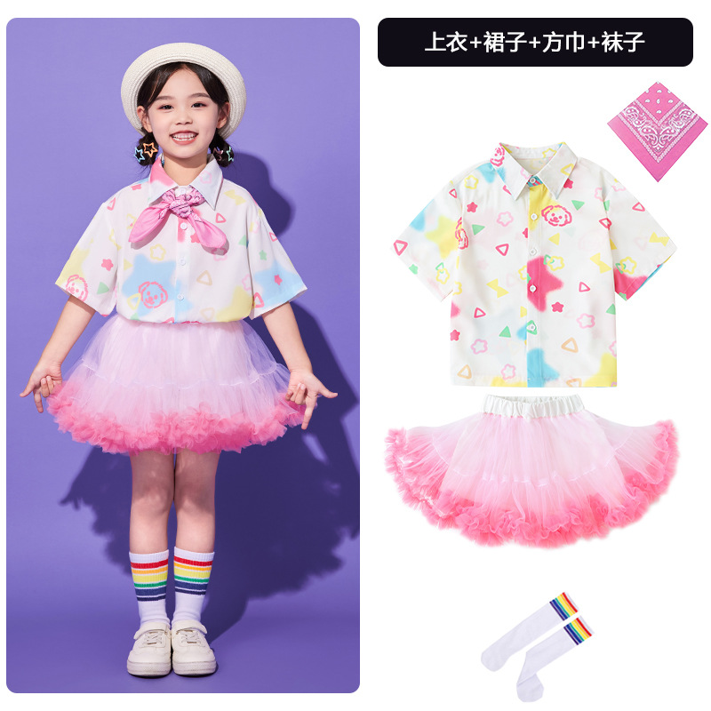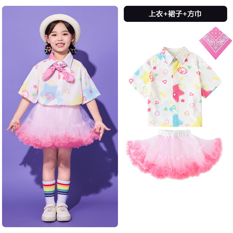 어린이 치어 퍼포먼스 의류 유치원 댄스 의류 초등생 합창 공연 의류 여아 스커트 세트