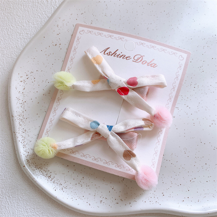 새로운 어린이 거즈 볼 패브릭 활 헤어핀 헤어 링 어린 소녀의 사이드 뱅 헤어 스트랩 헤어 스트랩