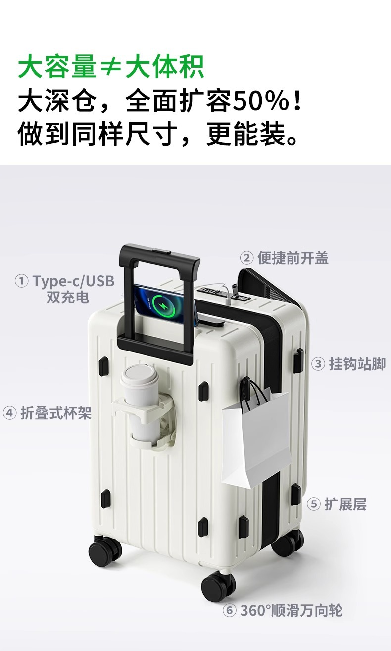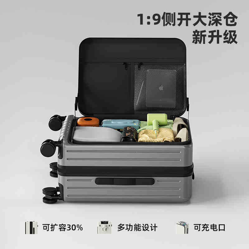 여성용 및 남성용 전면 개방형 가방 가죽 가방 다기능 24inch 트롤리 케이스 코드 박스 탑승 여행 가방 20inch스토어 가기