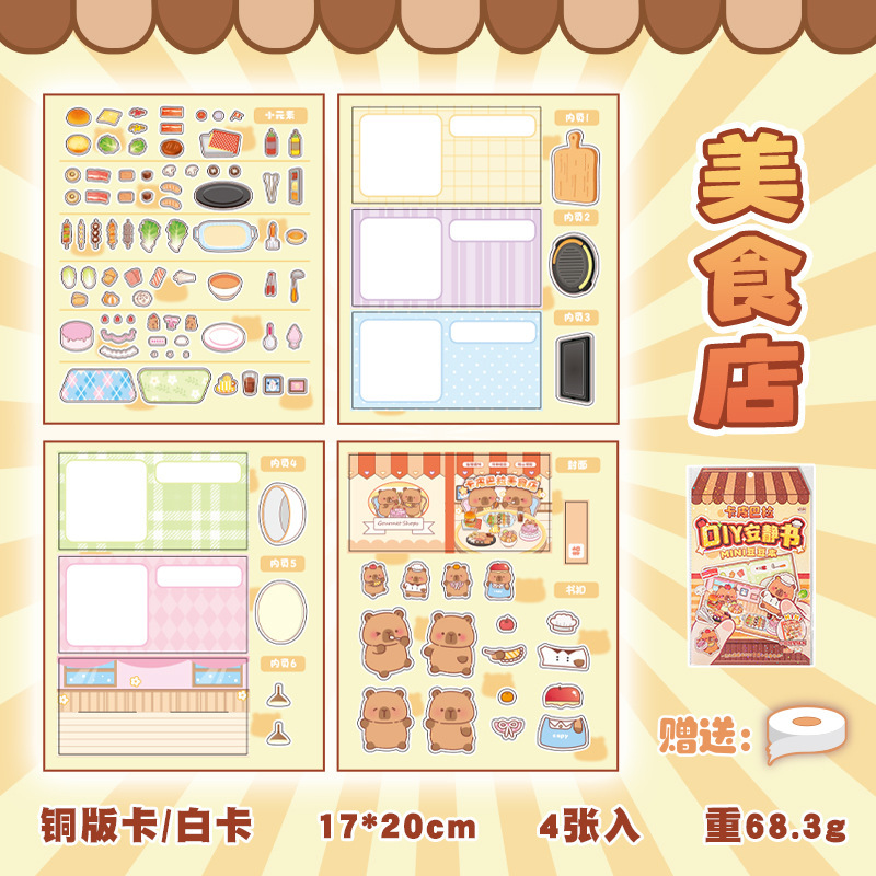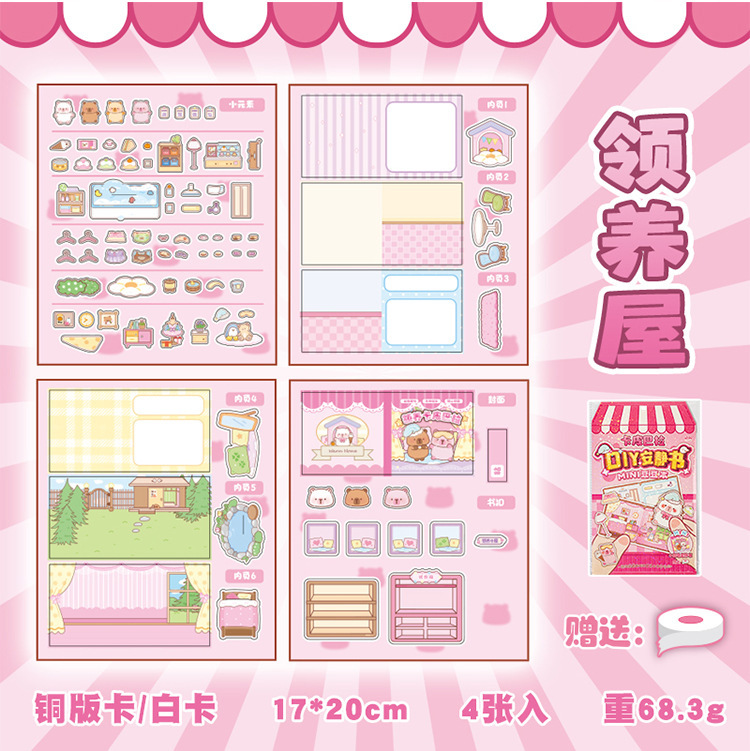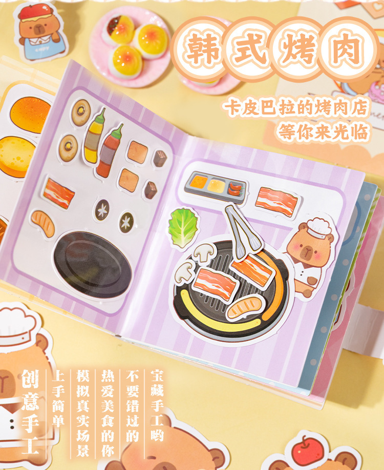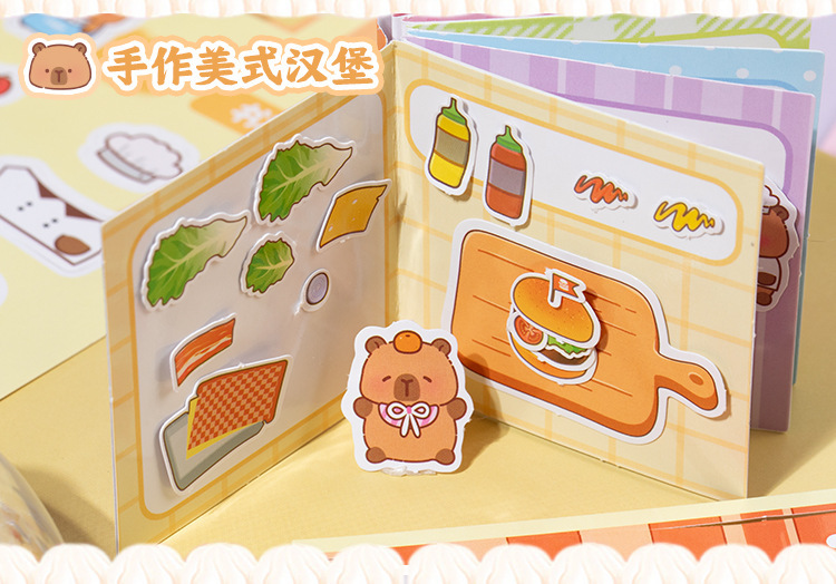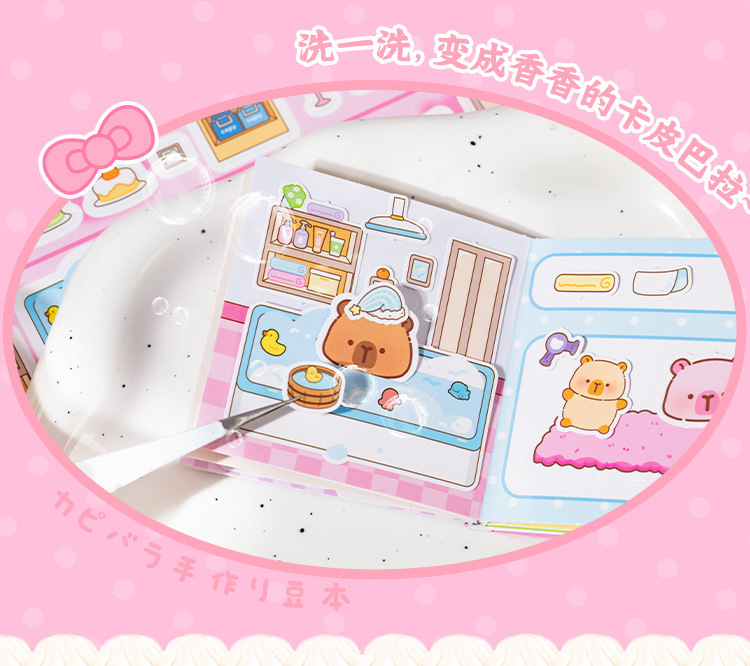 Yuxian Kapibara DIY 조용한 책 귀여운 작은 코 어린이 수첩 크리 에이 티브 놀이 감압 미니 콩 책스토어 가기