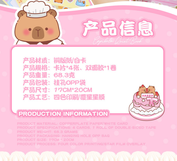 Yuxian Kapibara DIY 조용한 책 귀여운 작은 코 어린이 수첩 크리 에이 티브 놀이 감압 미니 콩 책