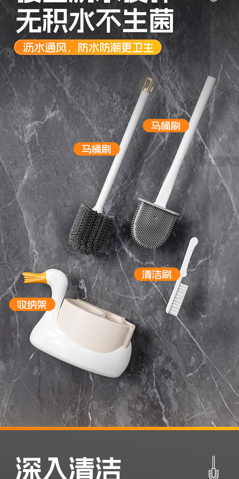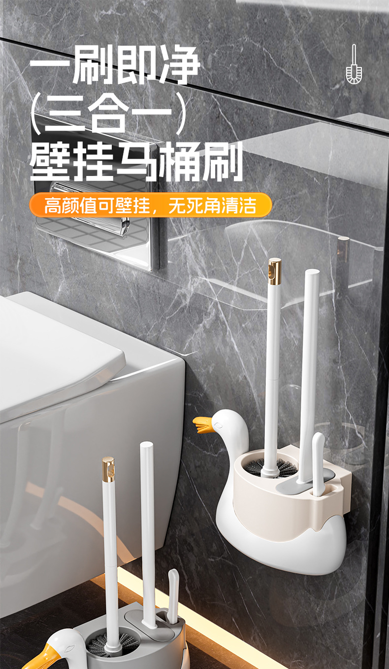 화이트 스완 3 대 1 화장실 브러시 벽 매달려 가정용 비 데드 앵글 화장실 새 화장실 브러시 세트 화장실 브러시스토어 가기