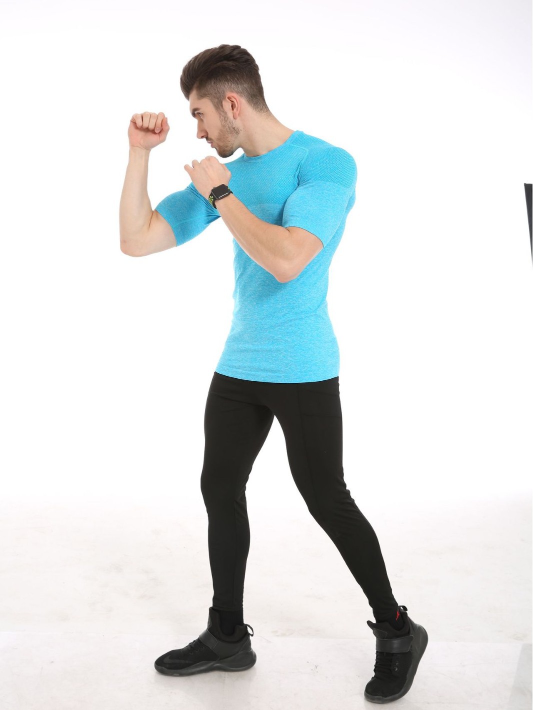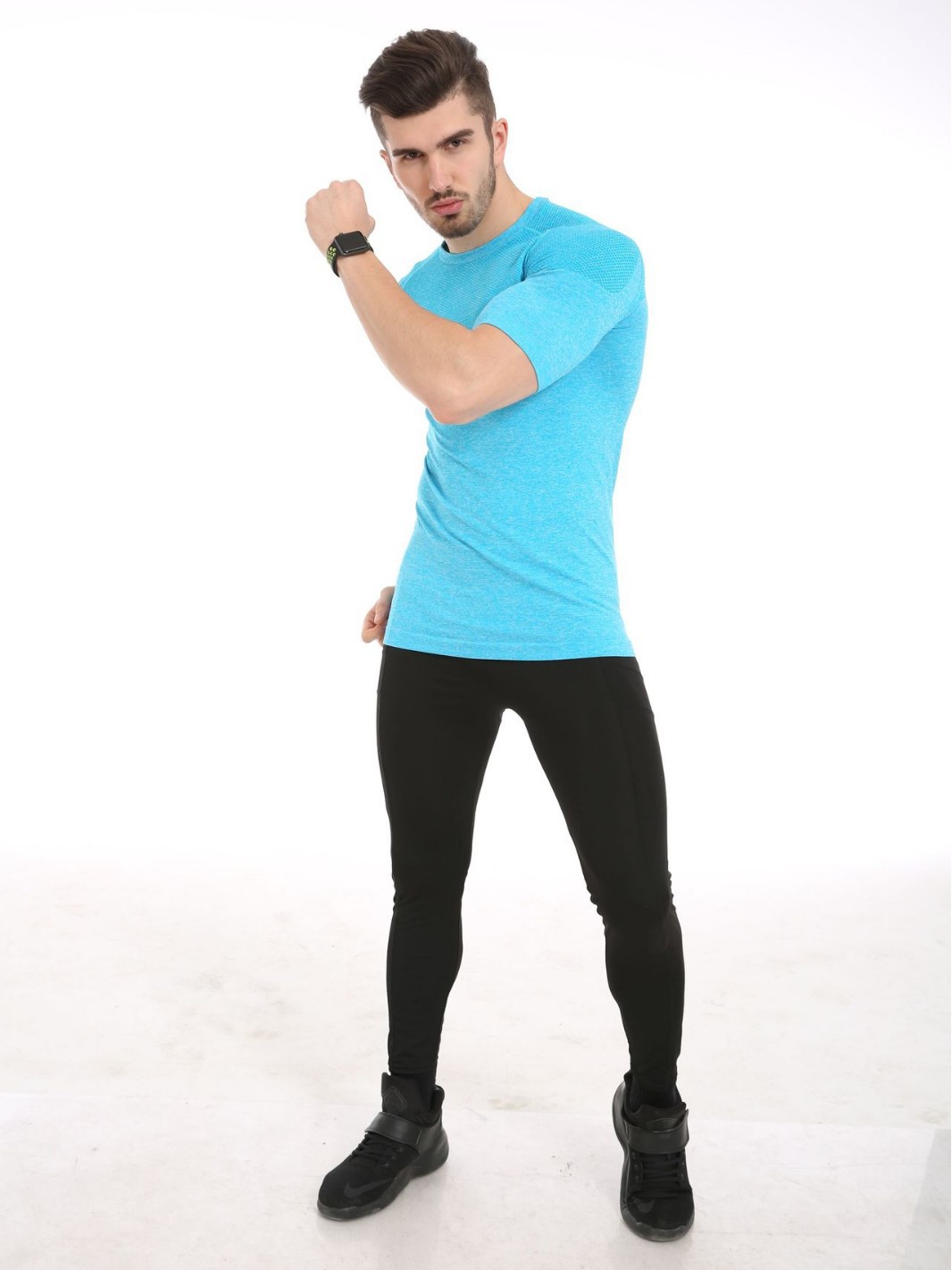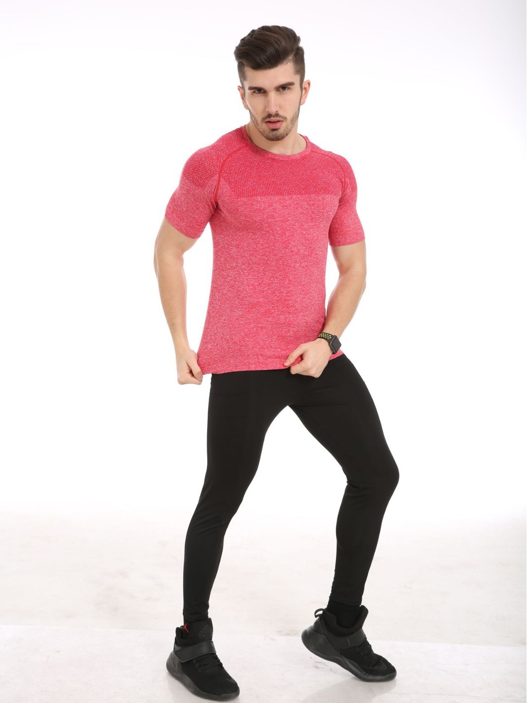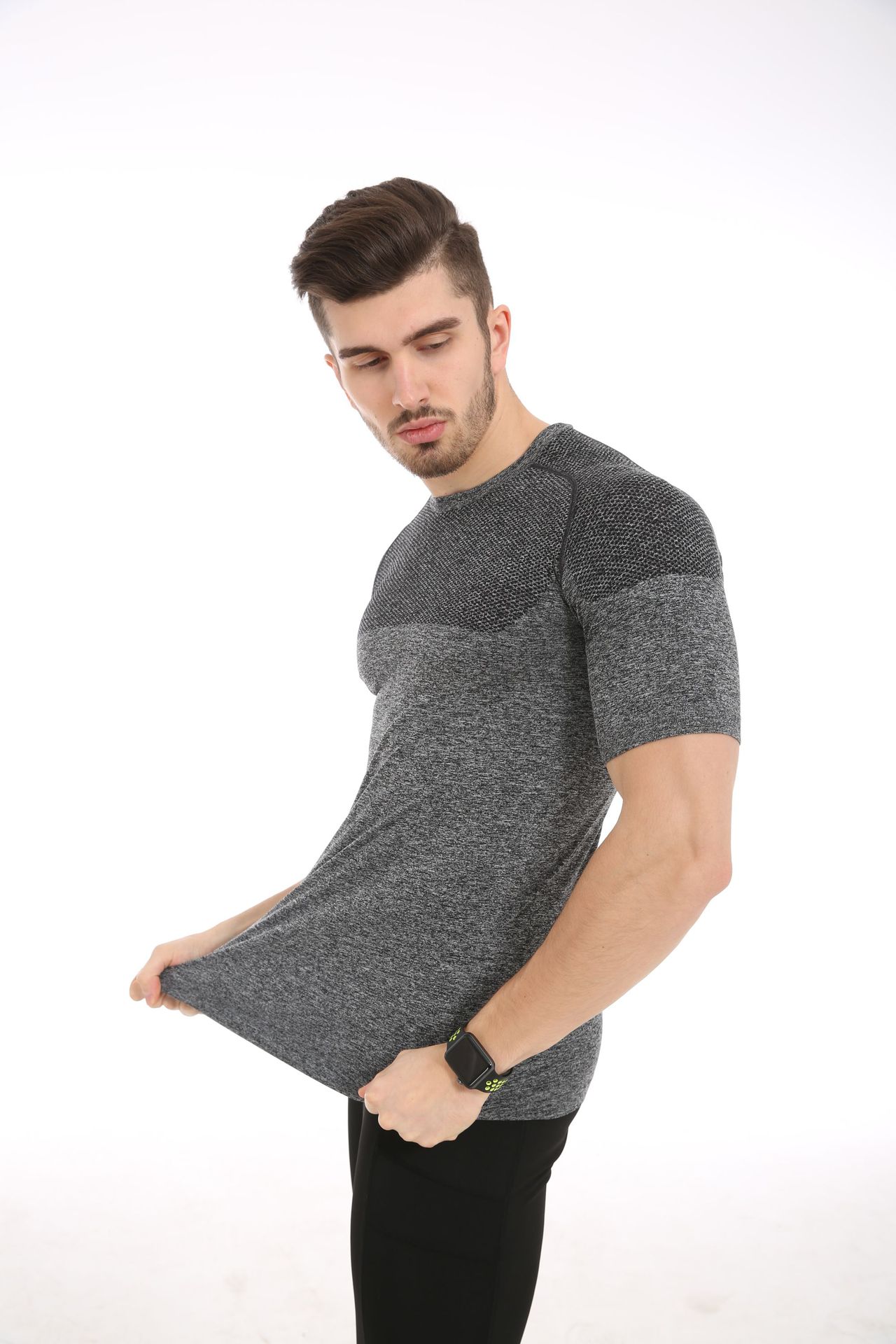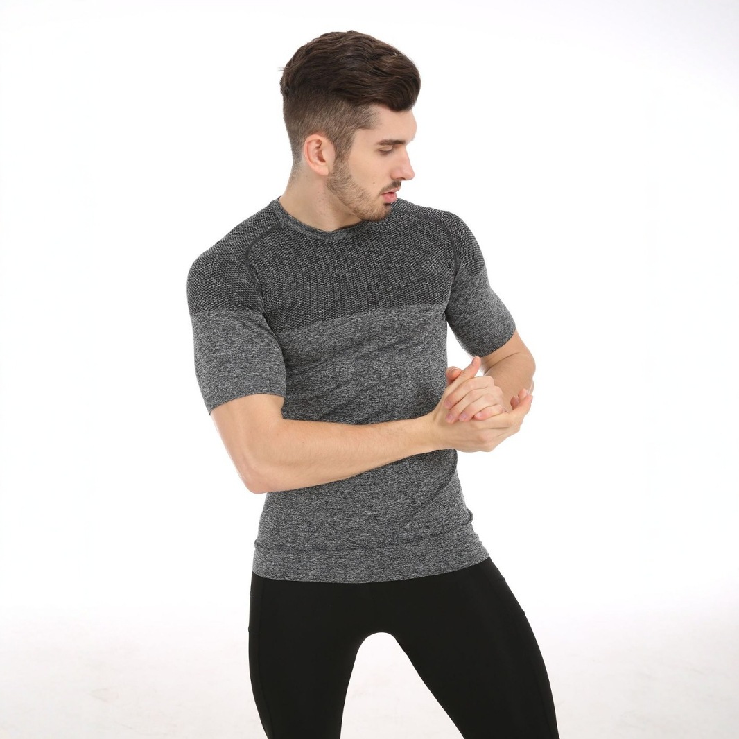 여름철 피트니스 근육 강조 무봉제 속건성 슬림핏 얇은 반팔 남성 러닝 스포츠 티셔츠
