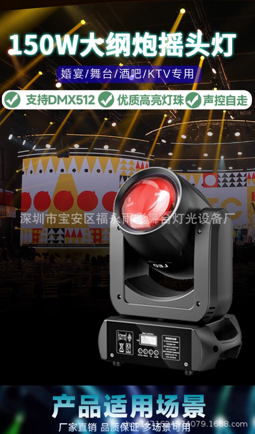 대외 무역용 LED 150W 대형 스틸 캐논 패턴 빔 무빙 헤드 다채로운 조명 공연용 바 디스코 KTV 무대 조명