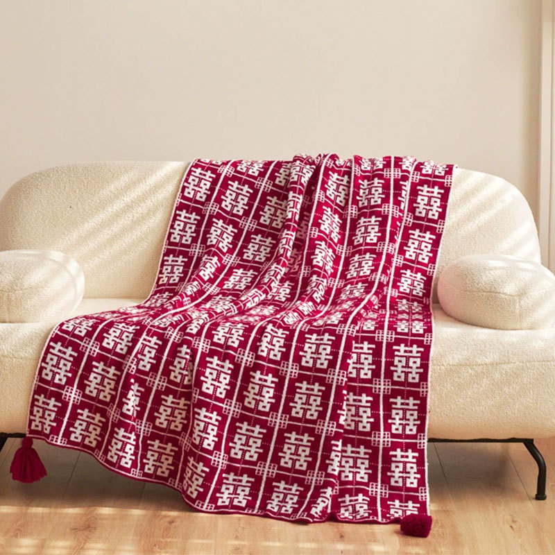 중국 스타일 하이 엔드 웨딩 백 시 커버 담요 빨간색 두꺼운 웨딩 룸 장식 침실 침대 옆 커버 휴일 선물 담요스토어 가기