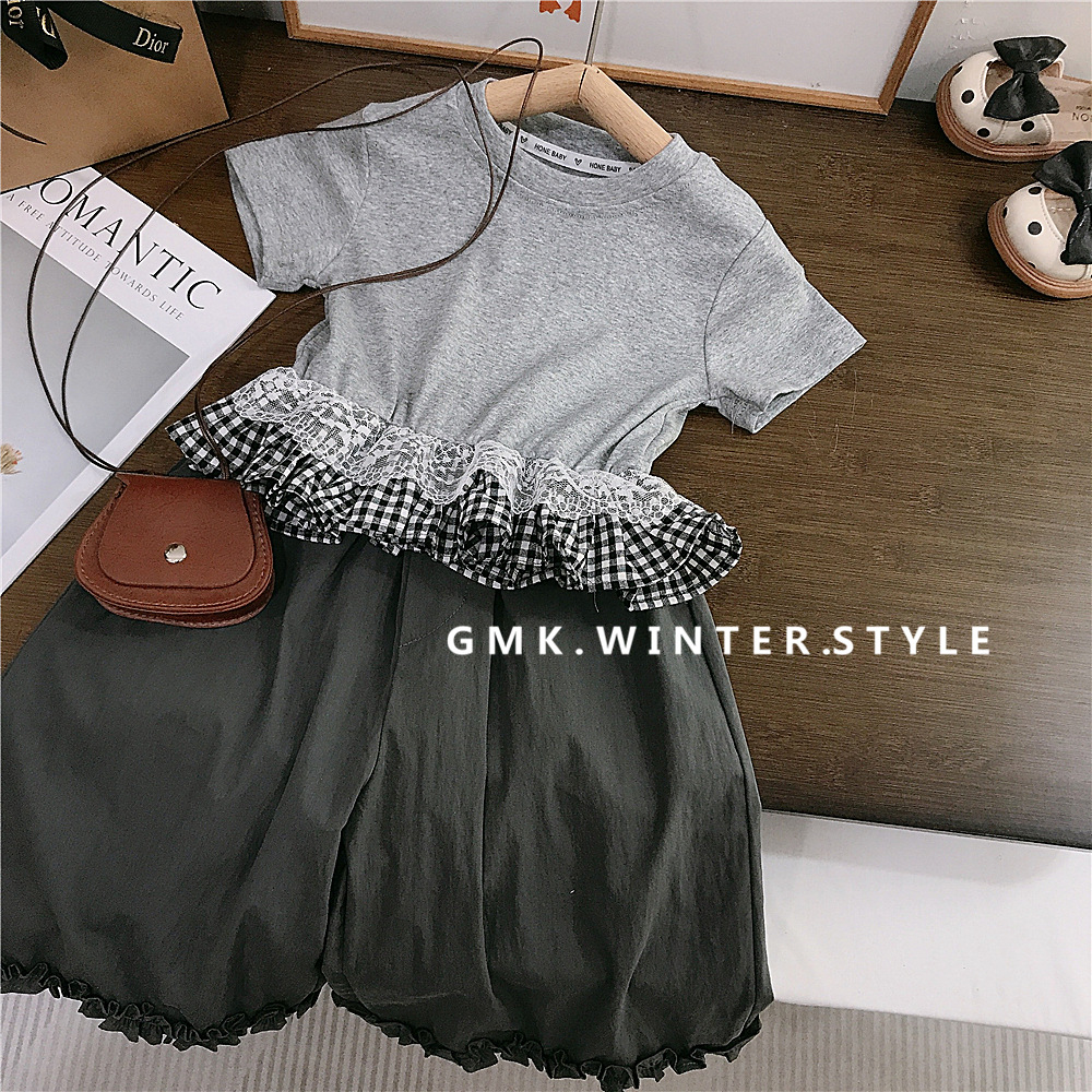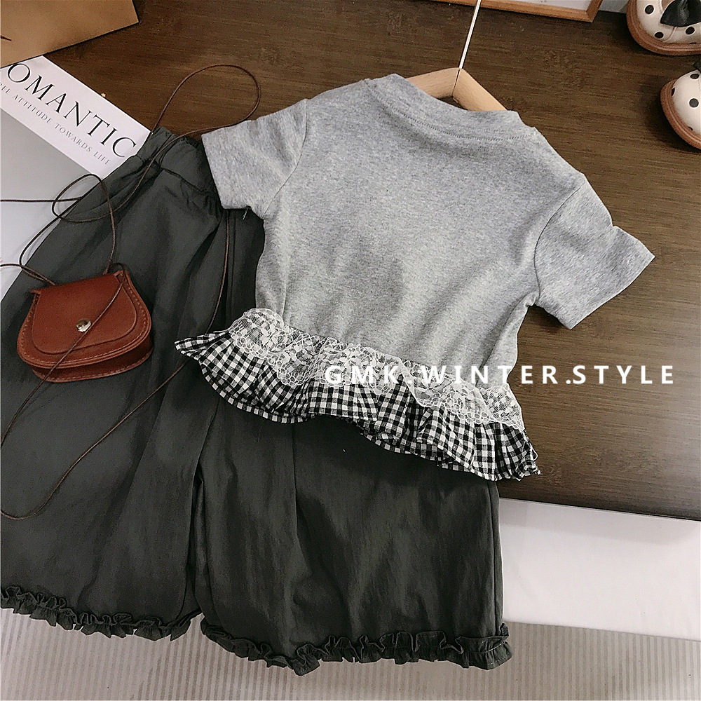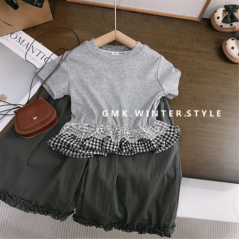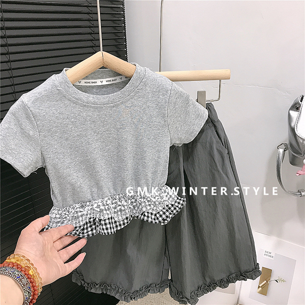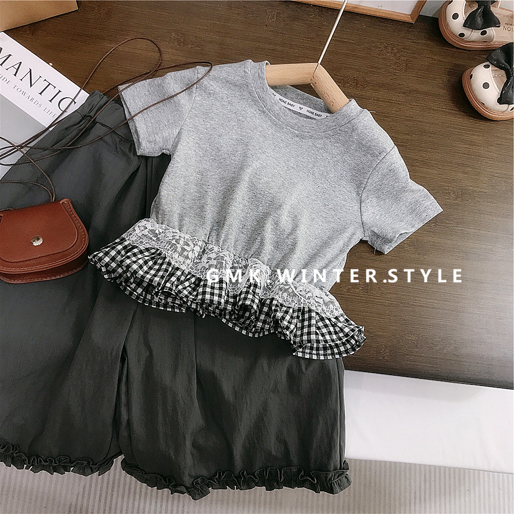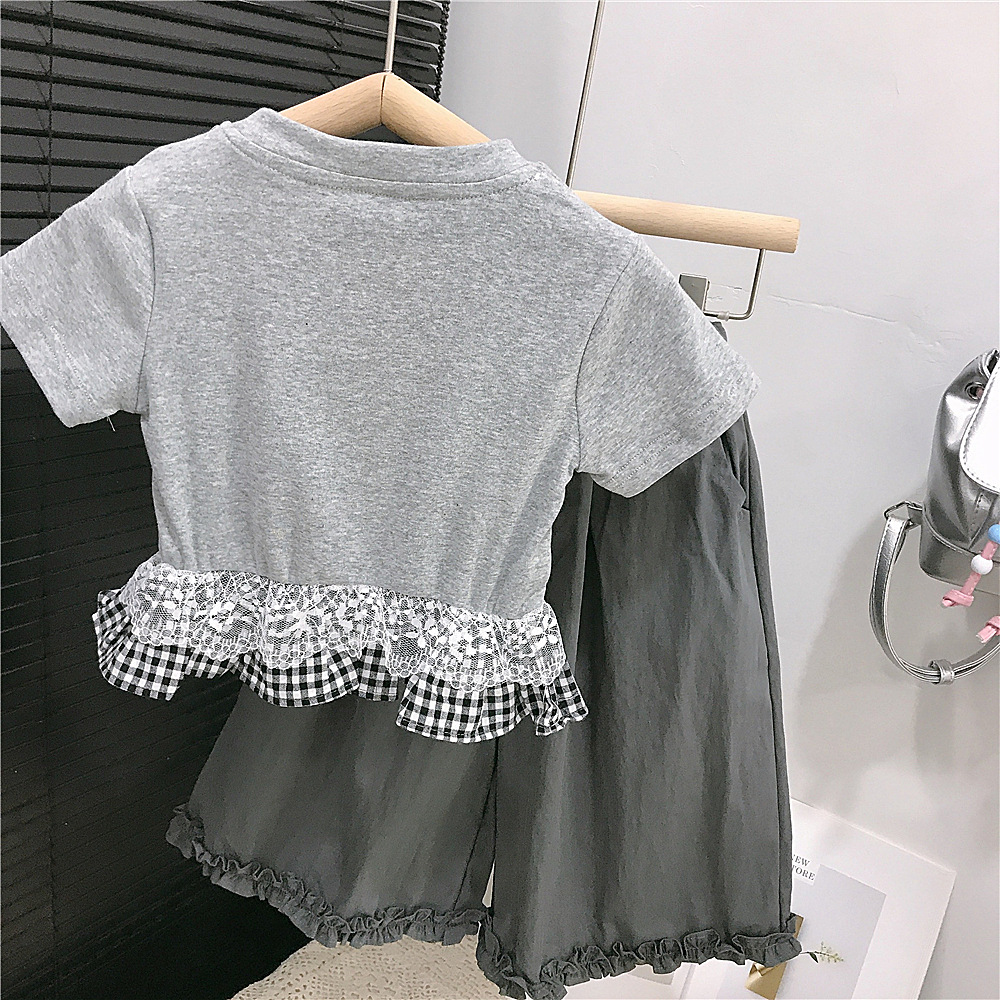 소녀 여름 세트 대외 무역 새로운 어린이 서양식 레이스 바느질 탑 아기 소녀 올 매치 바지 투피스 세트스토어 가기