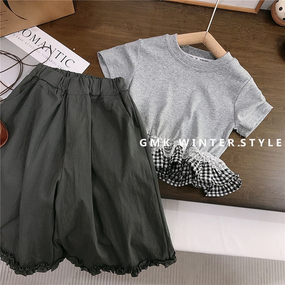 소녀 여름 세트 대외 무역 새로운 어린이 서양식 레이스 바느질 탑 아기 소녀 올 매치 바지 투피스 세트