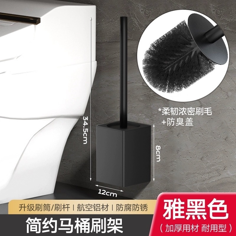 • 【업그레이드된 두께의 부착형】 사각형 냄새 방지 덮개 변기 브러쉬 - 블랙