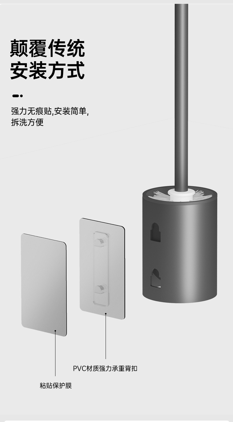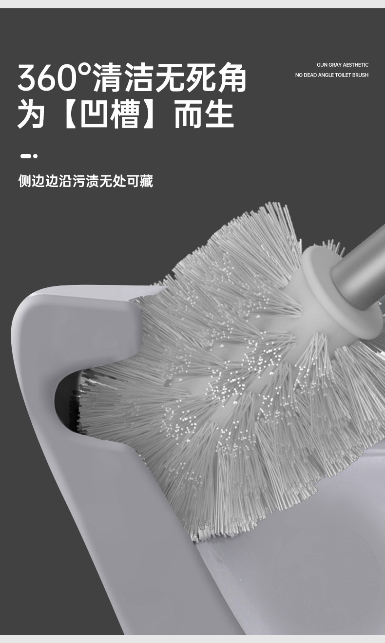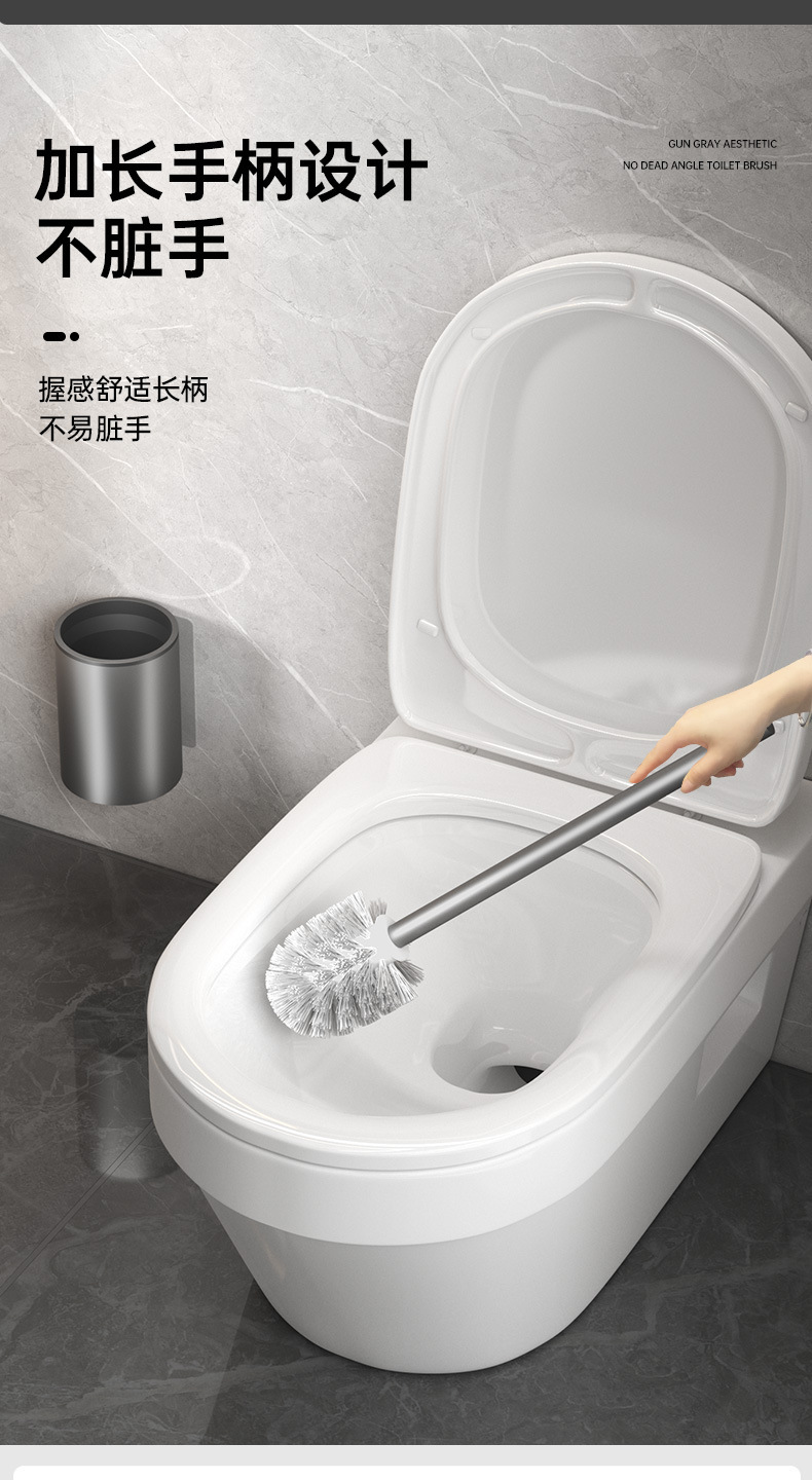 • [업그레이드된 두꺼운 패치 설치] 사각 변기 브러쉬건 그레이