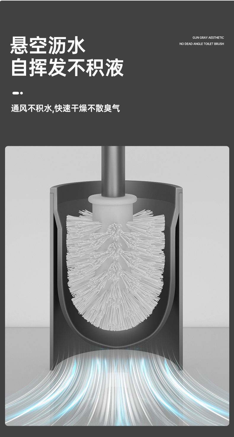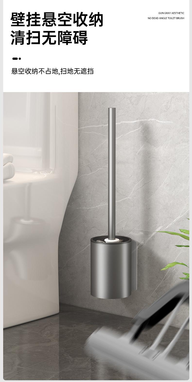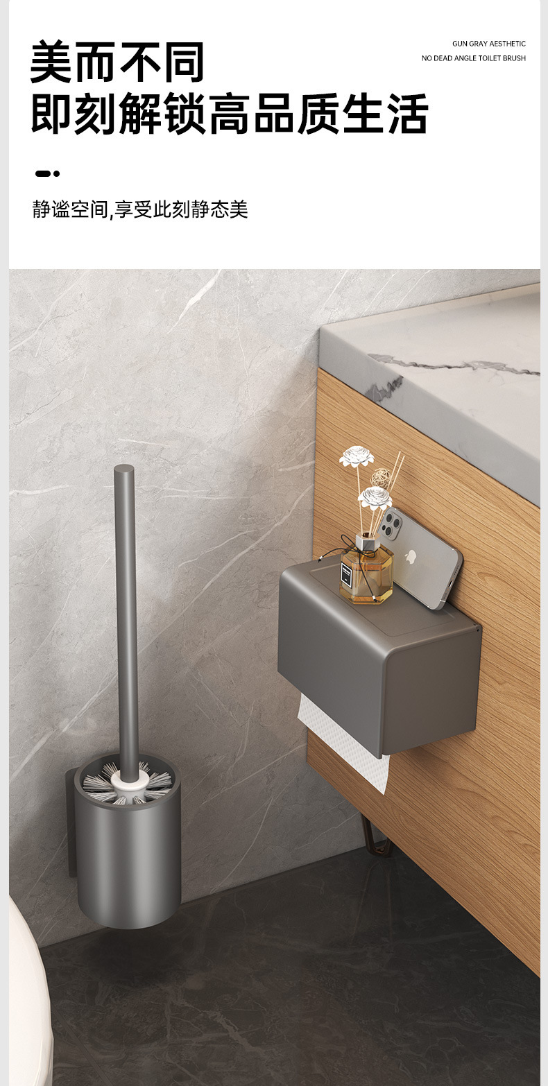 • [업그레이드된 두꺼운 패치 설치] 사각 변기 브러쉬건 그레이