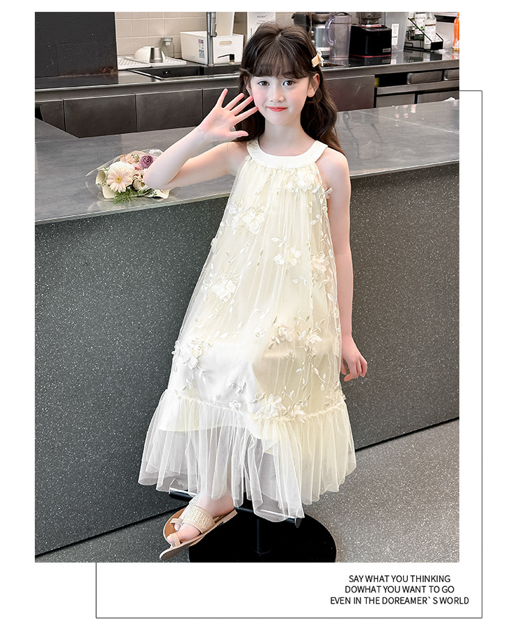 여자 입체 꽃 드레스 2025 여름 새로운 스타일 공주 드레스 큰 어린이를위한 유행 느슨한 긴 치마스토어 가기