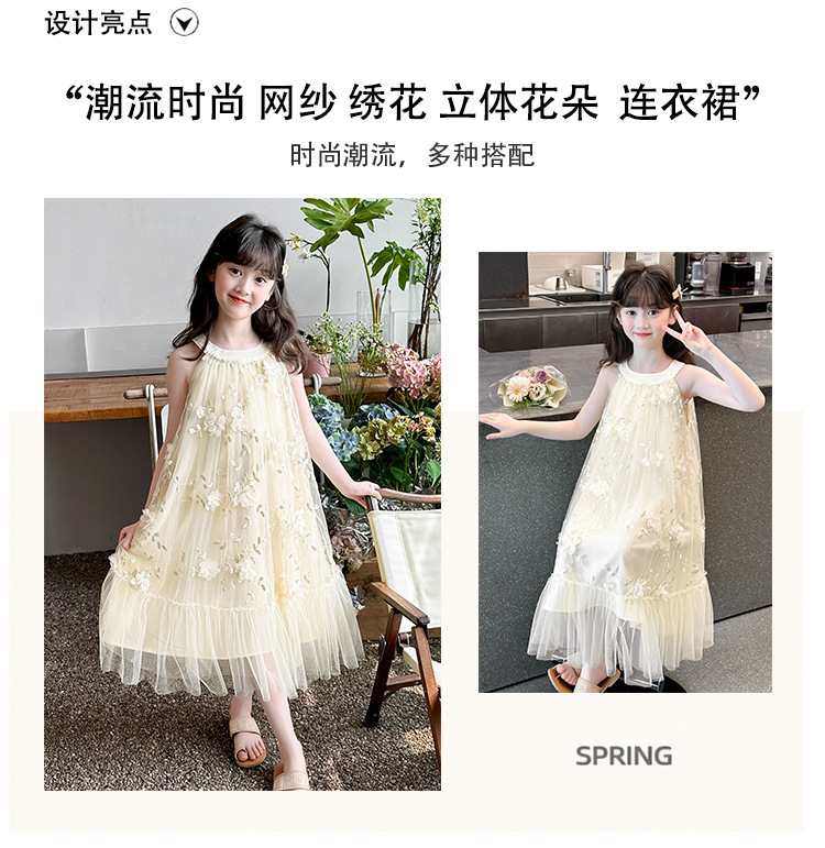 여자 입체 꽃 드레스 2025 여름 새로운 스타일 공주 드레스 큰 어린이를위한 유행 느슨한 긴 치마
