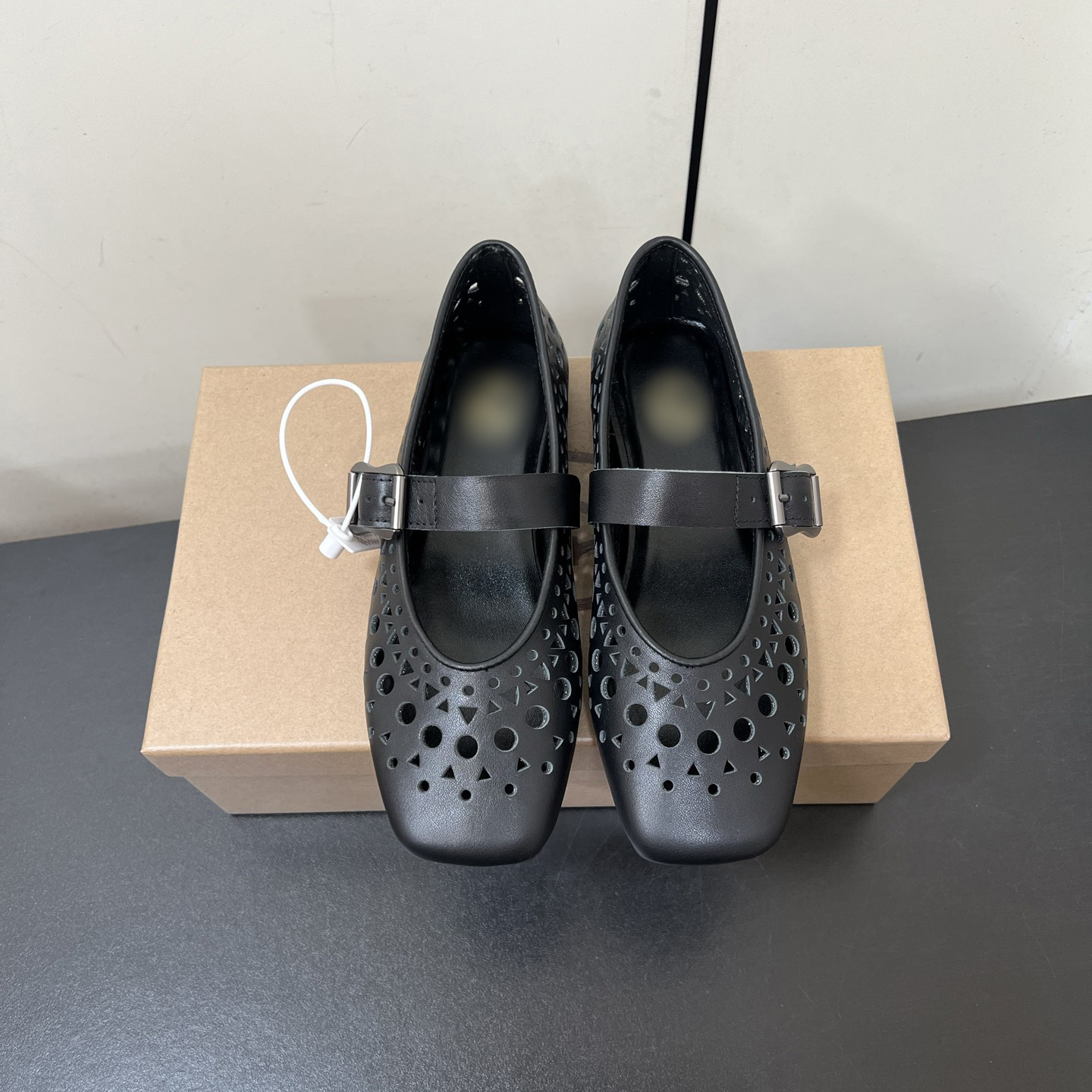 유럽과 미국의 복고풍 중공 메리 제인 신발 새로운 스타일의 정품 가죽 펌프 버클 스트랩 발레 슈즈 스퀘어 토 플랫 슈즈스토어 가기