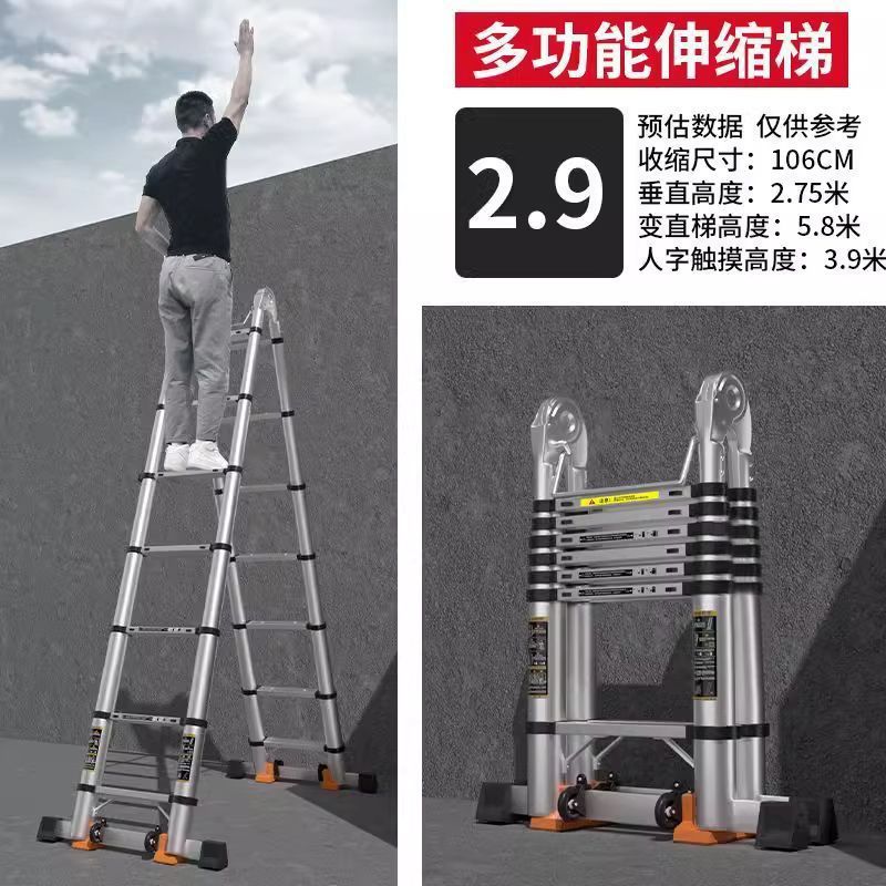 두꺼운 알루미늄 합금 리프팅 텔레스코픽 사다리 헤링본 접이식 사다리 가정용 다기능 두꺼운 엔지니어링 계단 대나무 사다리스토어 가기