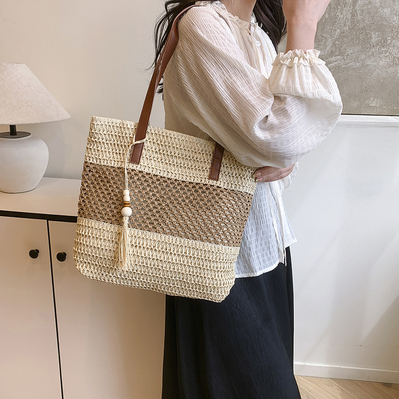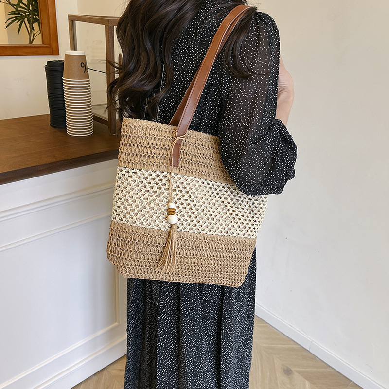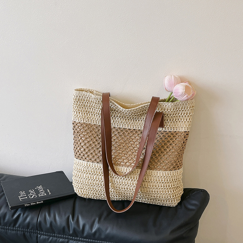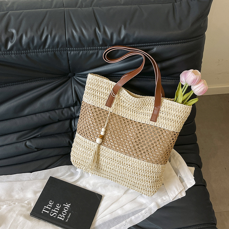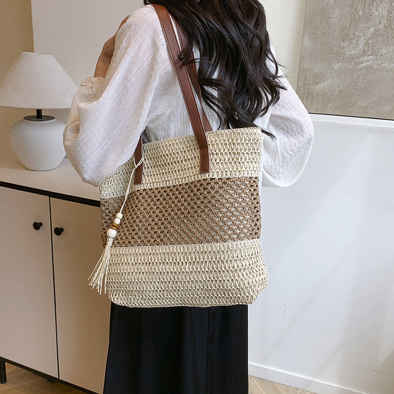 패션 봄 새로운 짠 토트 백 여성 올 매치 비치 목회 캐주얼 맞춤형 틈새 어깨 가방스토어 가기