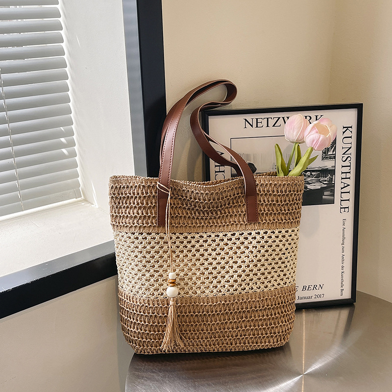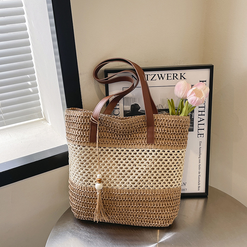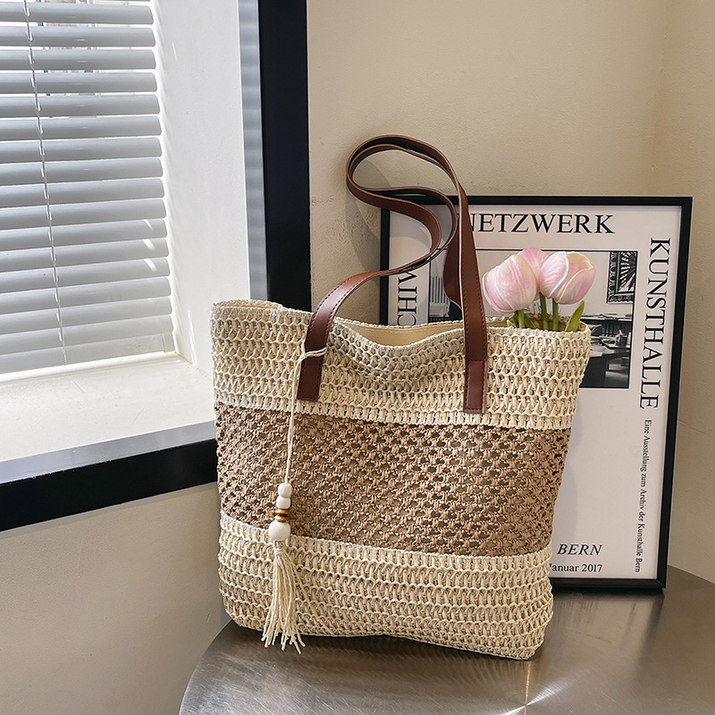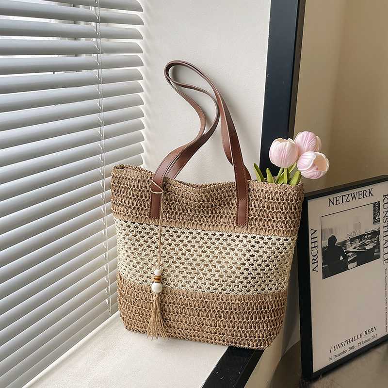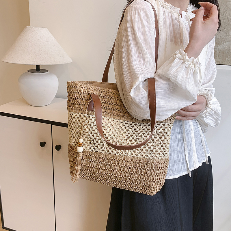 패션 봄 새로운 짠 토트 백 여성 올 매치 비치 목회 캐주얼 맞춤형 틈새 어깨 가방스토어 가기