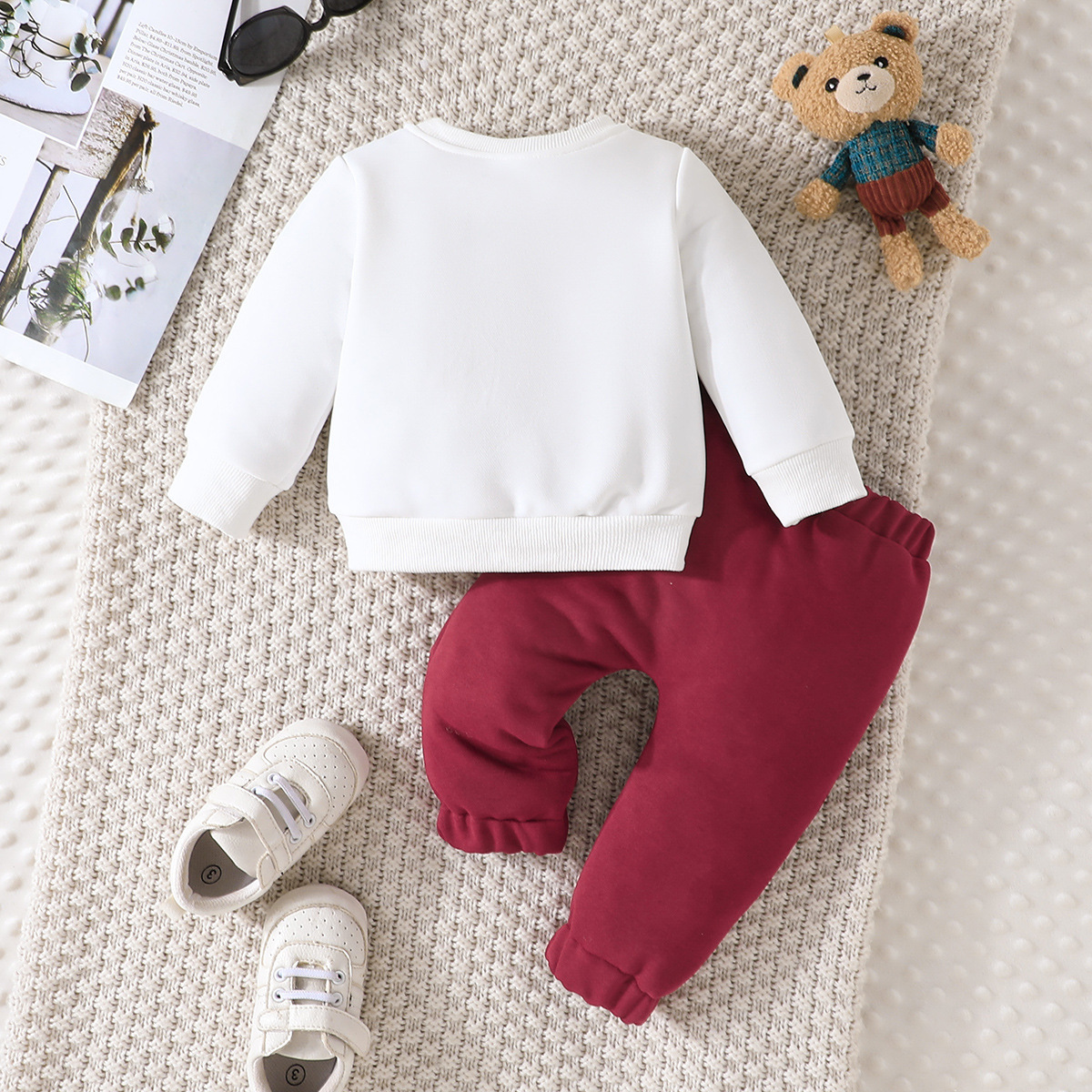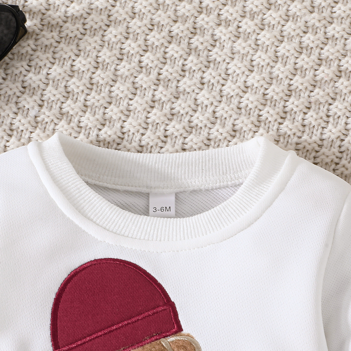 2025 국경 간 대외 무역 아동 의류 가을, 겨울 새로운 만화 편지 모자 곰 수 놓은 스웨트 셔츠와 바지 투피스 세트