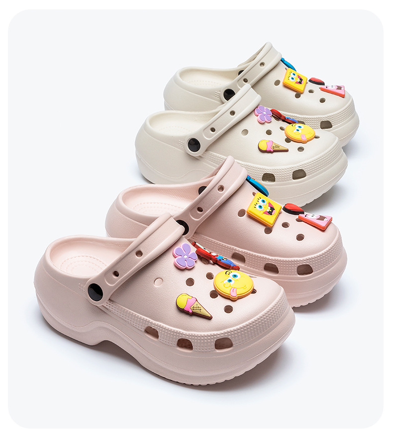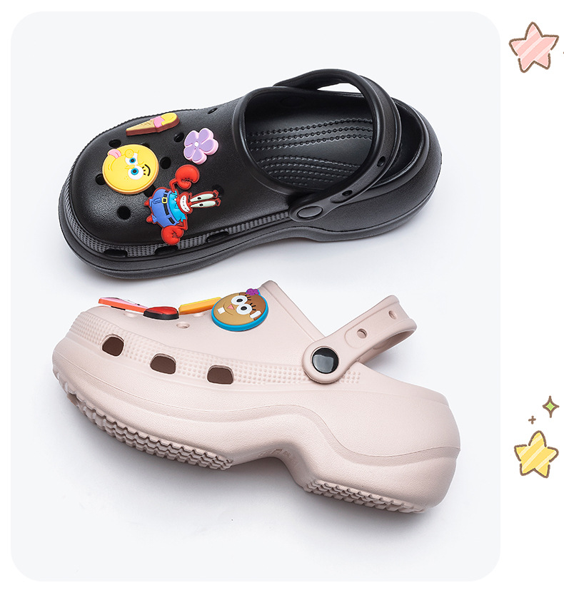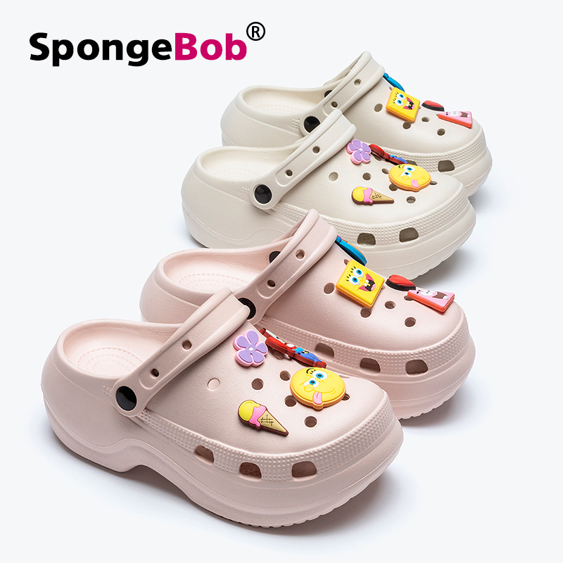 여름철 여성을 위한 스폰지밥 키높이 부드러운 밑창 발가락 슬리퍼, 미끄럼 방지, 냄새 방지, 학생용 아웃도어 웨어, 여성용 나막신 샌들